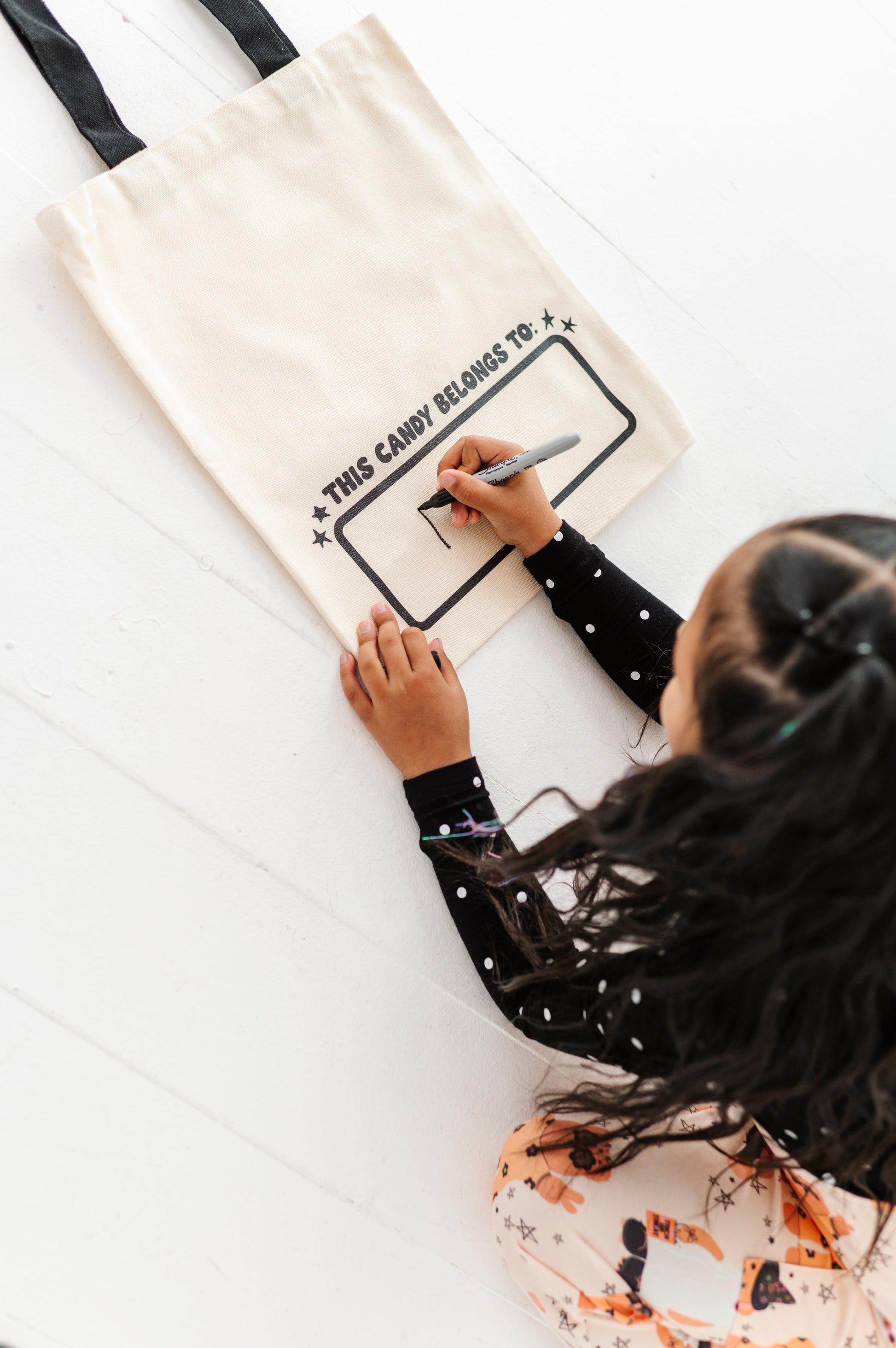 Our NEW and improved trick-or-treat bags are back! These were such a hit last year and are the most fun (and cute) way to trick-or-treat this Halloween! Each bag comes with a sharpie marker to write your child's name on the name tag on the back! This is such a fun activity for your kids to be able to "claim their candy" :) BAGS MEASURE 40X35 CM WITH HANDLES THAT DROP DOWN 10.5''