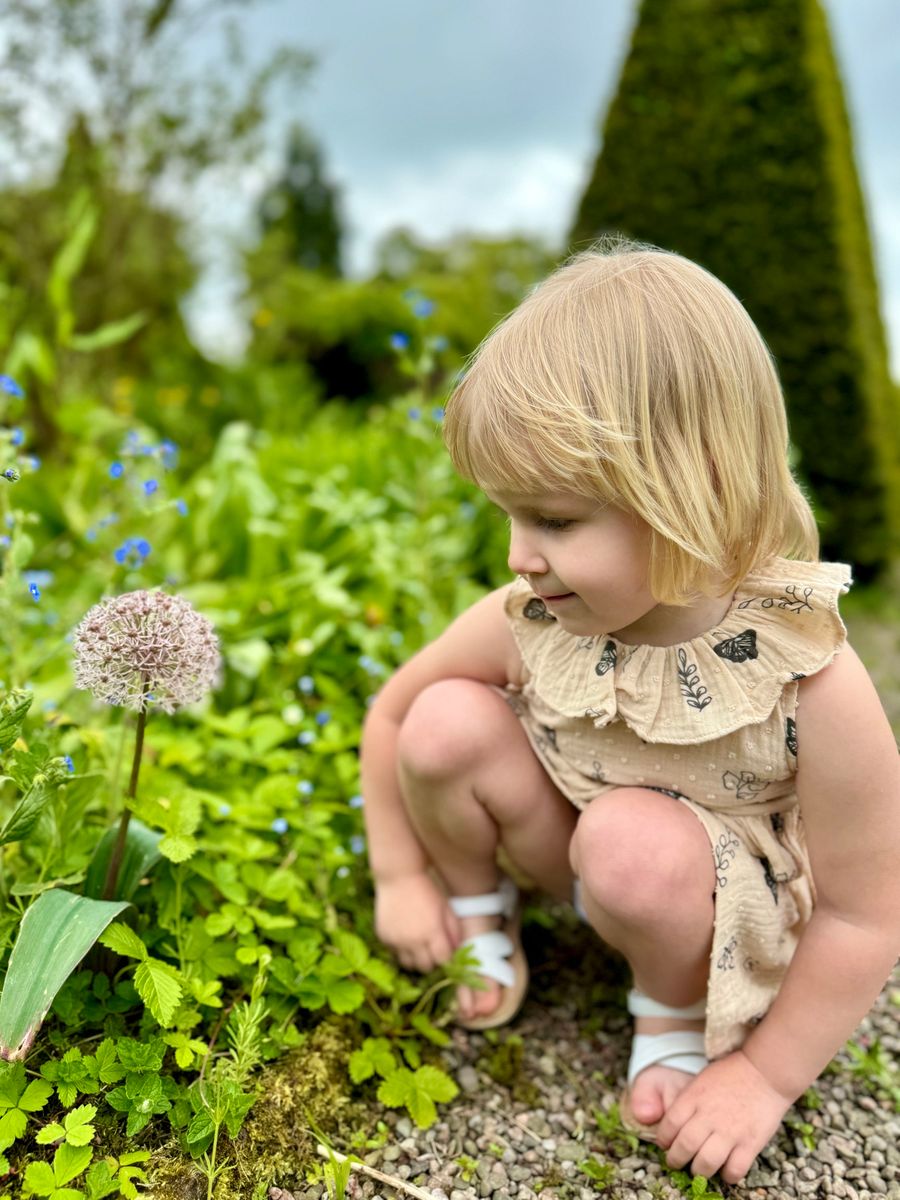 Naturally sweet and perfect for sunshine days, the Beau Dress – Cream Floral Butterfly is a dreamy addition to your little one’s summer wardrobe. Made from soft, breathable 100% cotton muslin, this unlined dress features a delicate black butterfly and botanical print on a warm cream base, finished with a charming ruffle collar.
