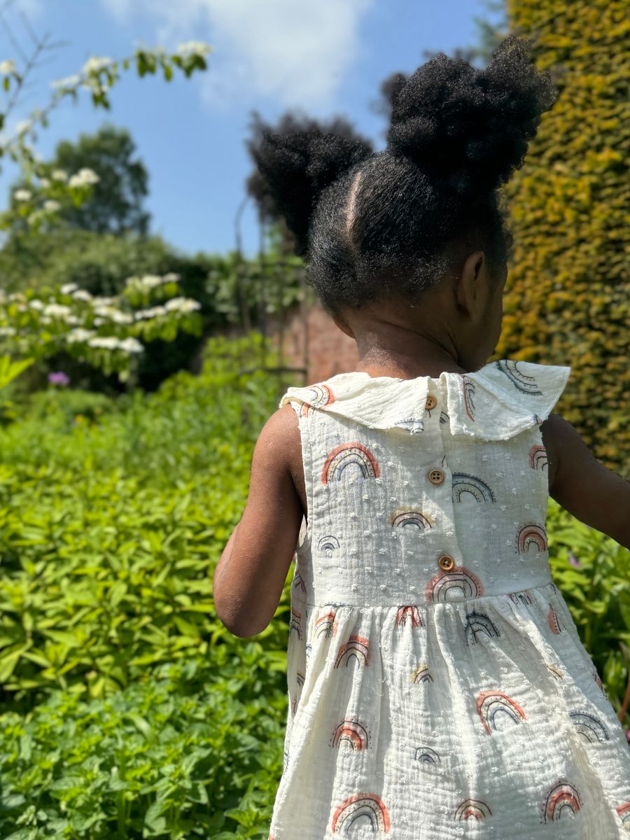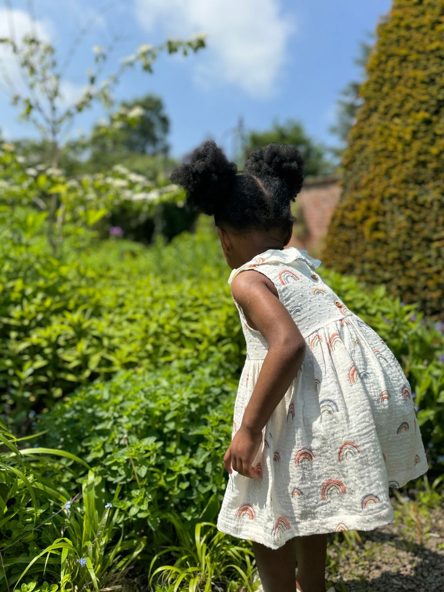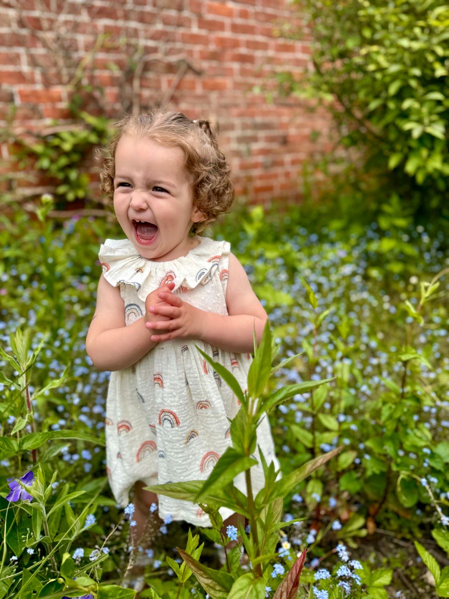 Let her shine in the Beau Rainbow Dress, a breezy favorite for sunshine-filled days! Made from soft, 100% cotton muslin, this lightweight girls’ dress features a playful all-over rainbow print and sweet ruffle collar detail. Perfect for warm weather wear, this dress keeps things cool and comfy for everyday play or special moments.