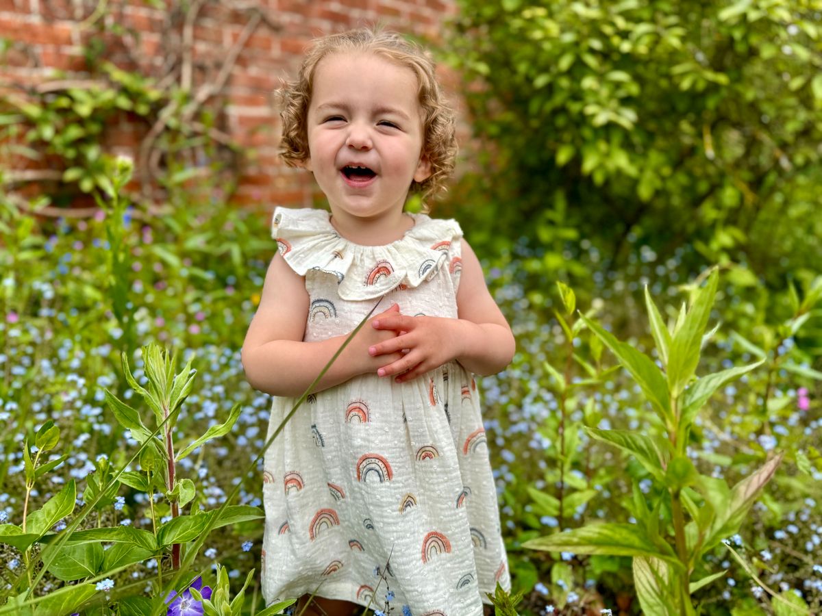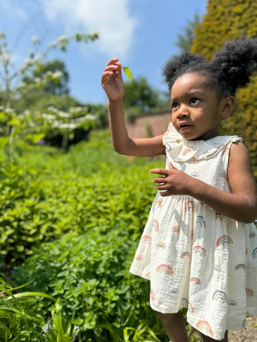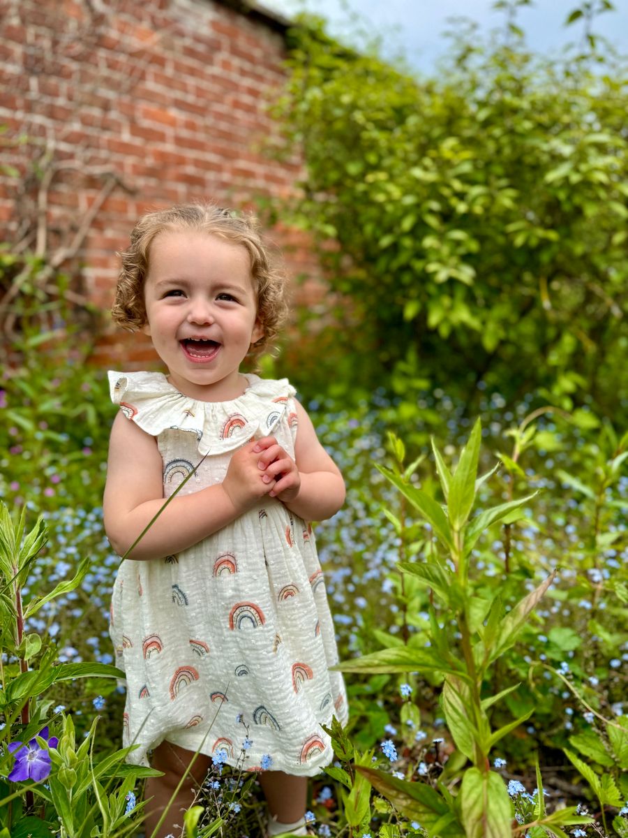Let her shine in the Beau Rainbow Dress, a breezy favorite for sunshine-filled days! Made from soft, 100% cotton muslin, this lightweight girls’ dress features a playful all-over rainbow print and sweet ruffle collar detail. Perfect for warm weather wear, this dress keeps things cool and comfy for everyday play or special moments.