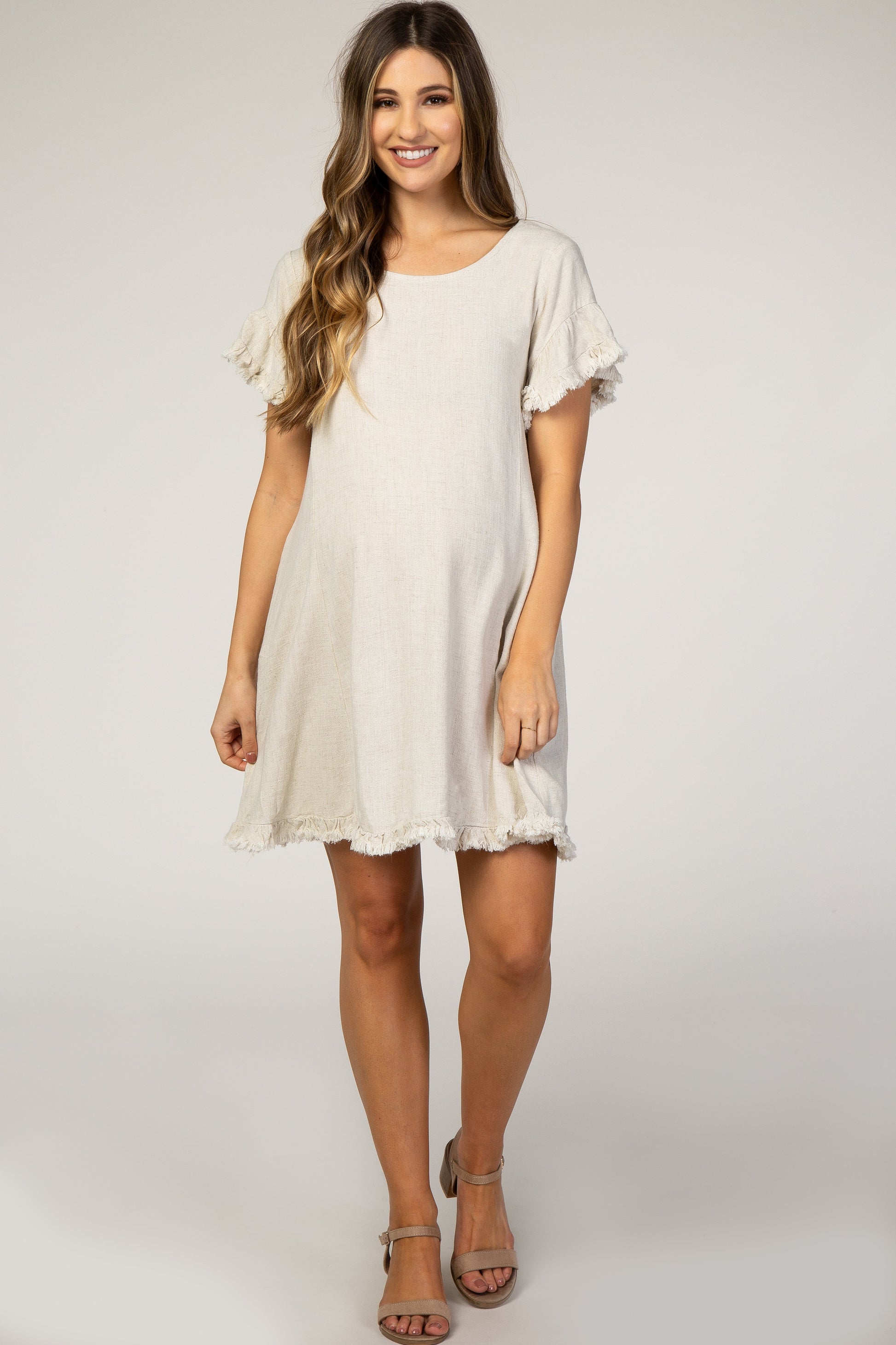 Beige Fringe Linen Maternity Dress