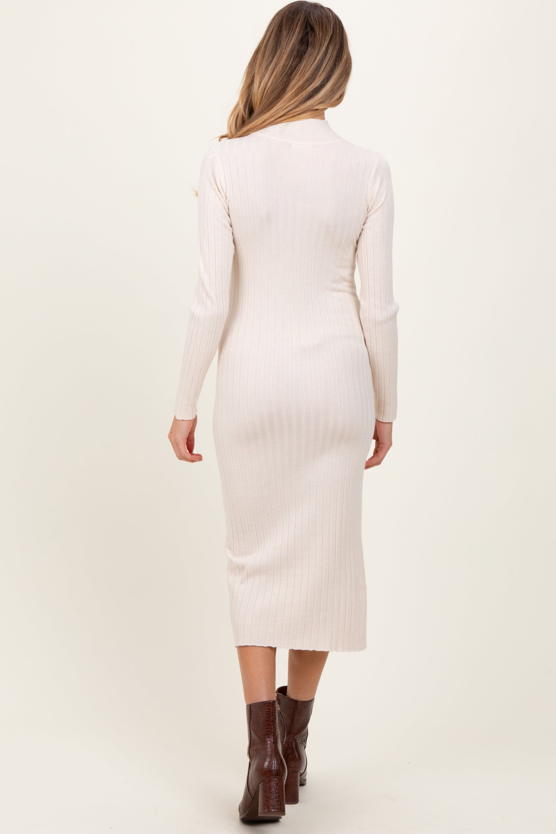 Beige Mock Neck Ribbed Maternity Sweater Dress