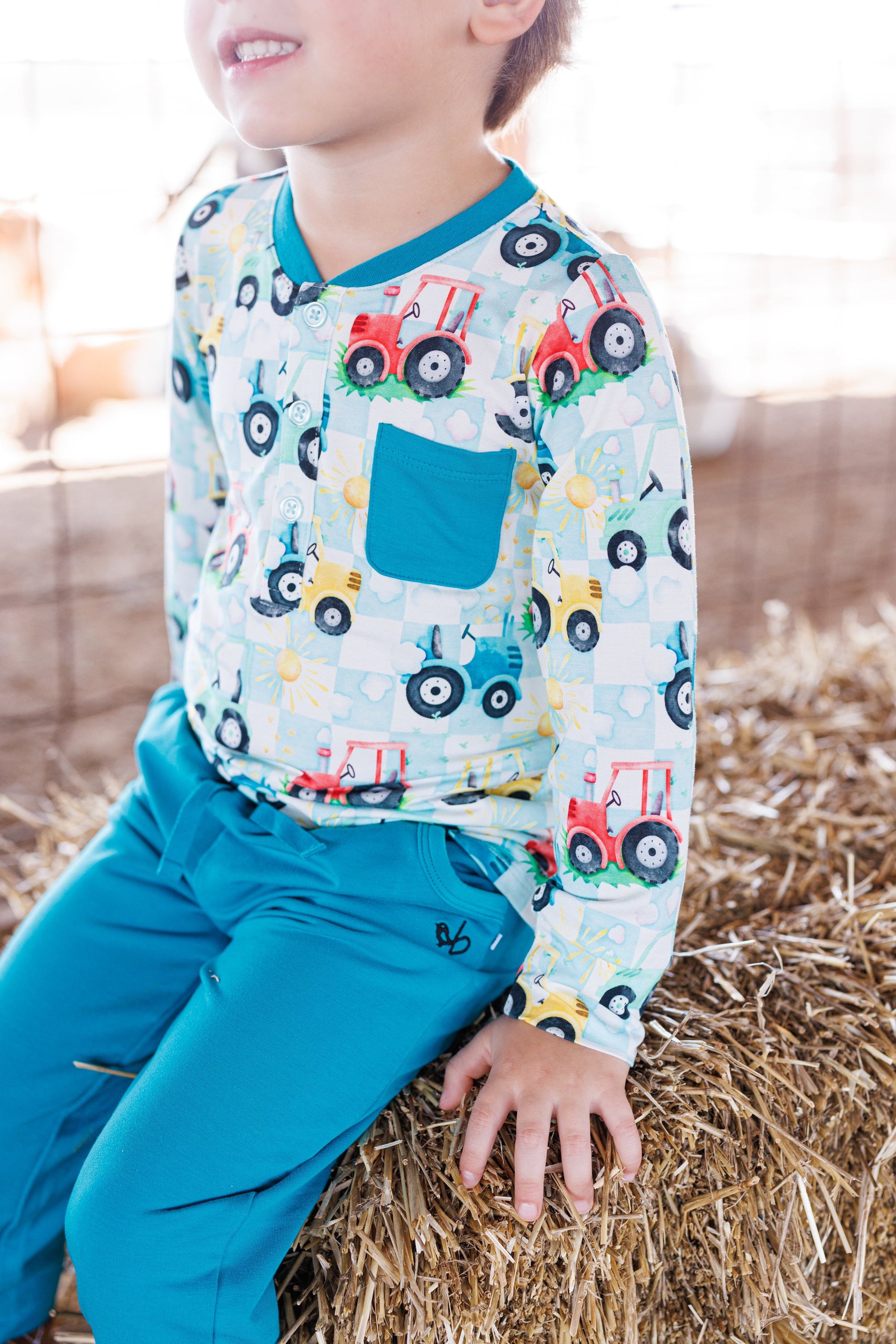 This lightweight and breathable shirt and short set is ideal for warm-weather adventures. Crafted from buttery-soft bamboo viscose with a touch of spandex, it’s gentle on sensitive skin and perfect for staying cool and comfy. The adorable pocket adds the perfect playful touch, and the versatile design makes it great for wearing as a set or pairing with other wardrobe favorites for the cutest outfits of the day!