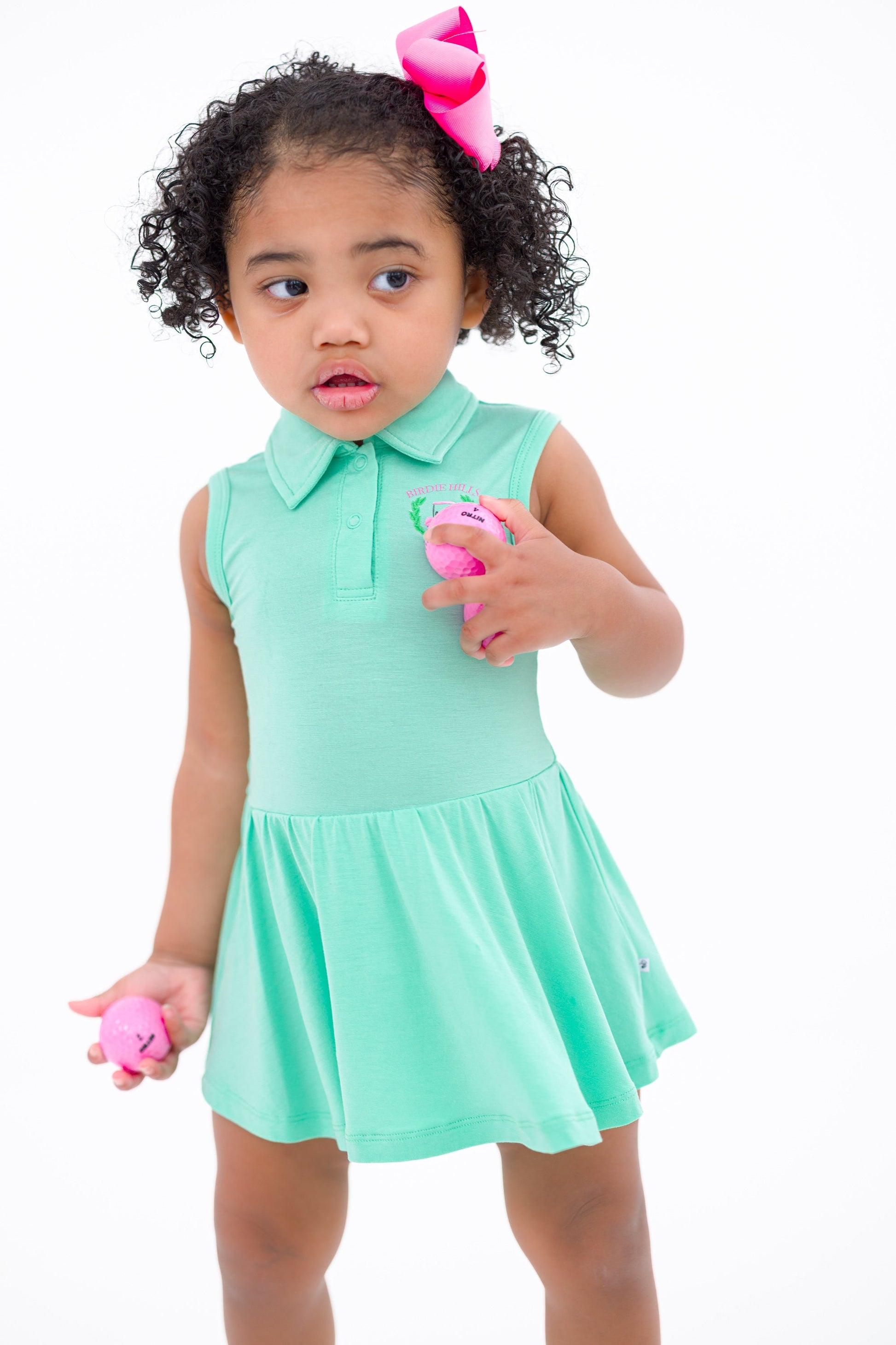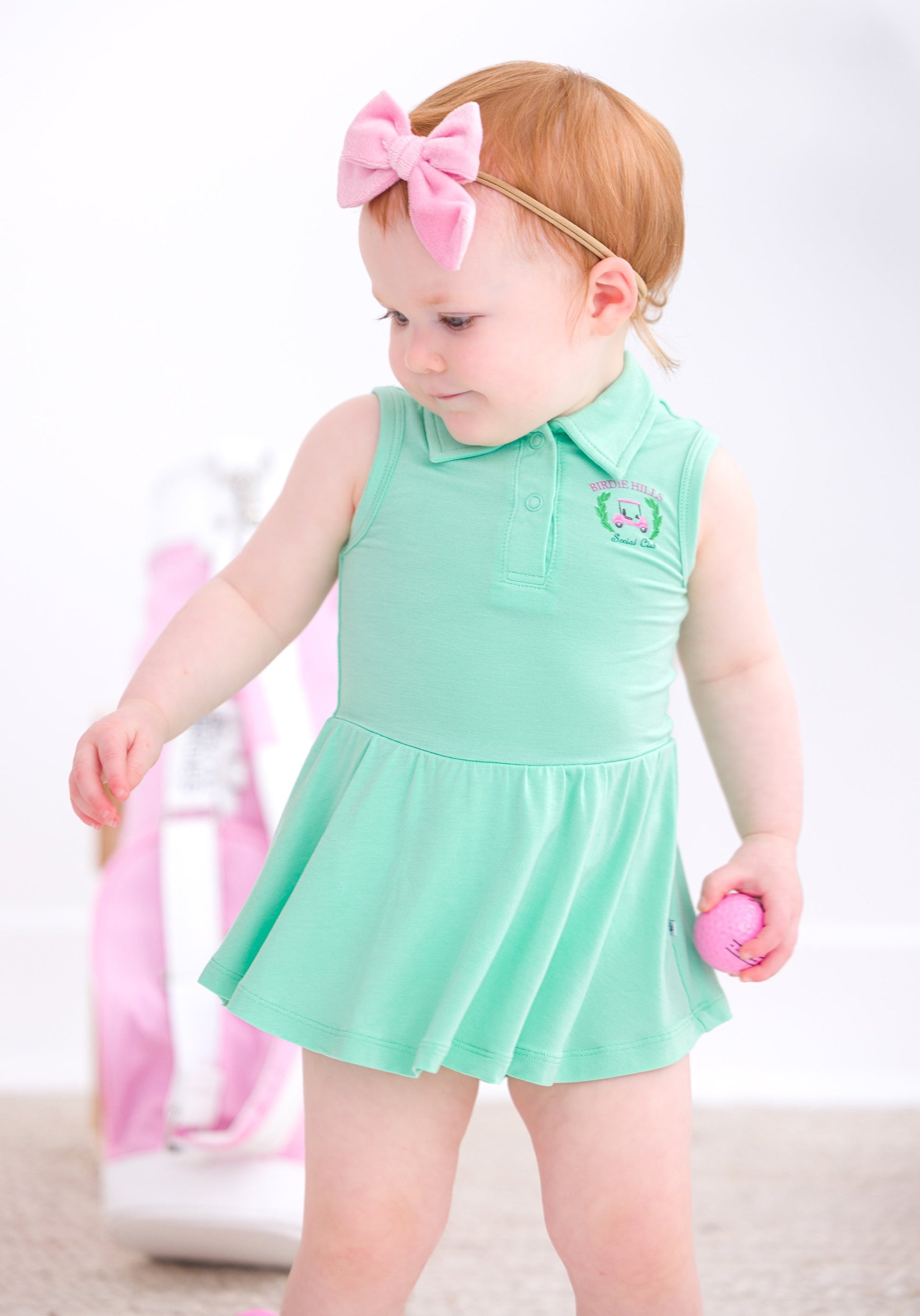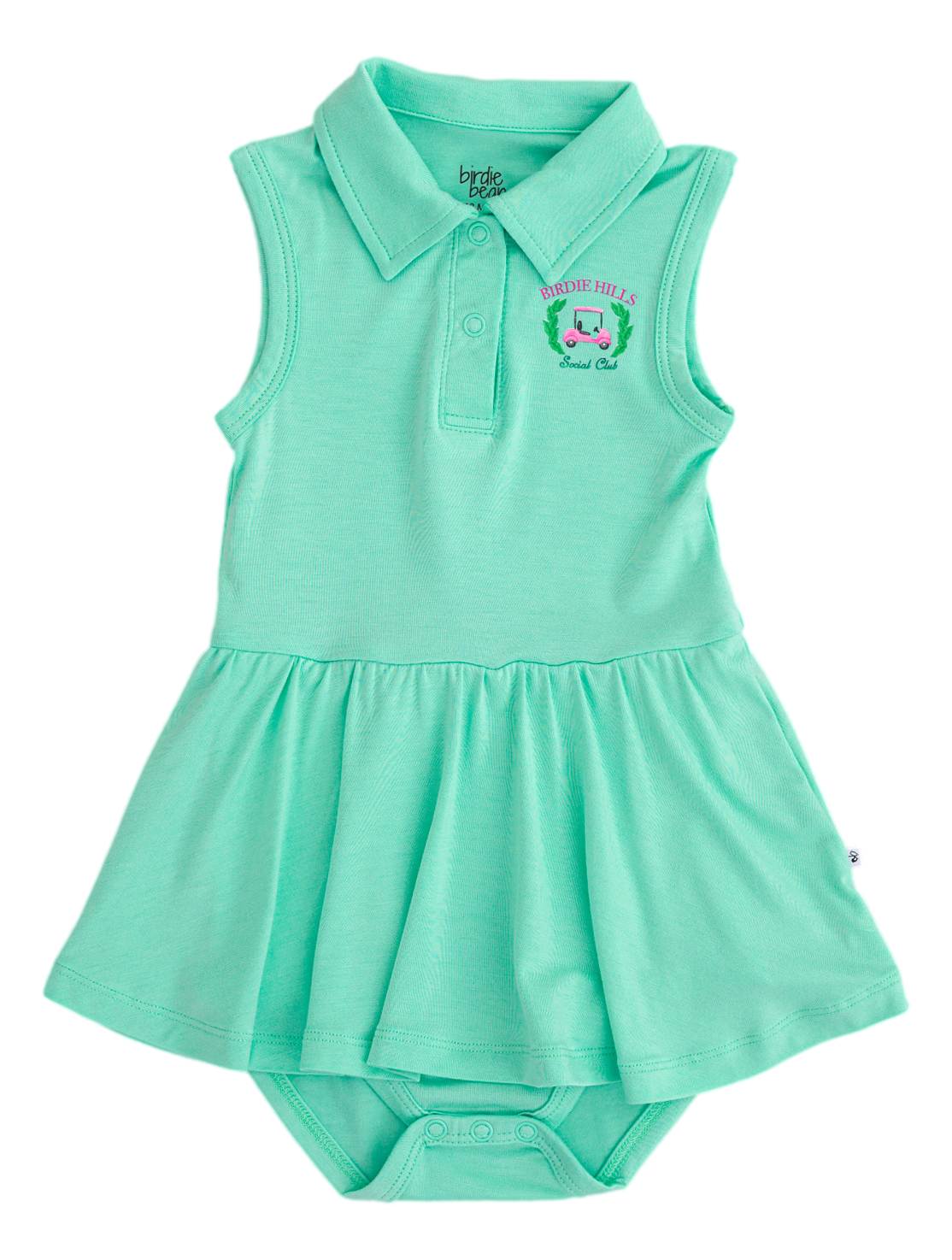 This sweet and sporty Birdie Hills Golf Club dress is made for your little one’s on-the-go adventures—from the playroom to the putting green. Crafted from our signature bamboo viscose and spandex blend, it offers breathable comfort, a gentle stretch, and all-day softness. With a classic collared polo neckline and a twirl-worthy skirt, it’s perfect for everyday play with a polished twist!
