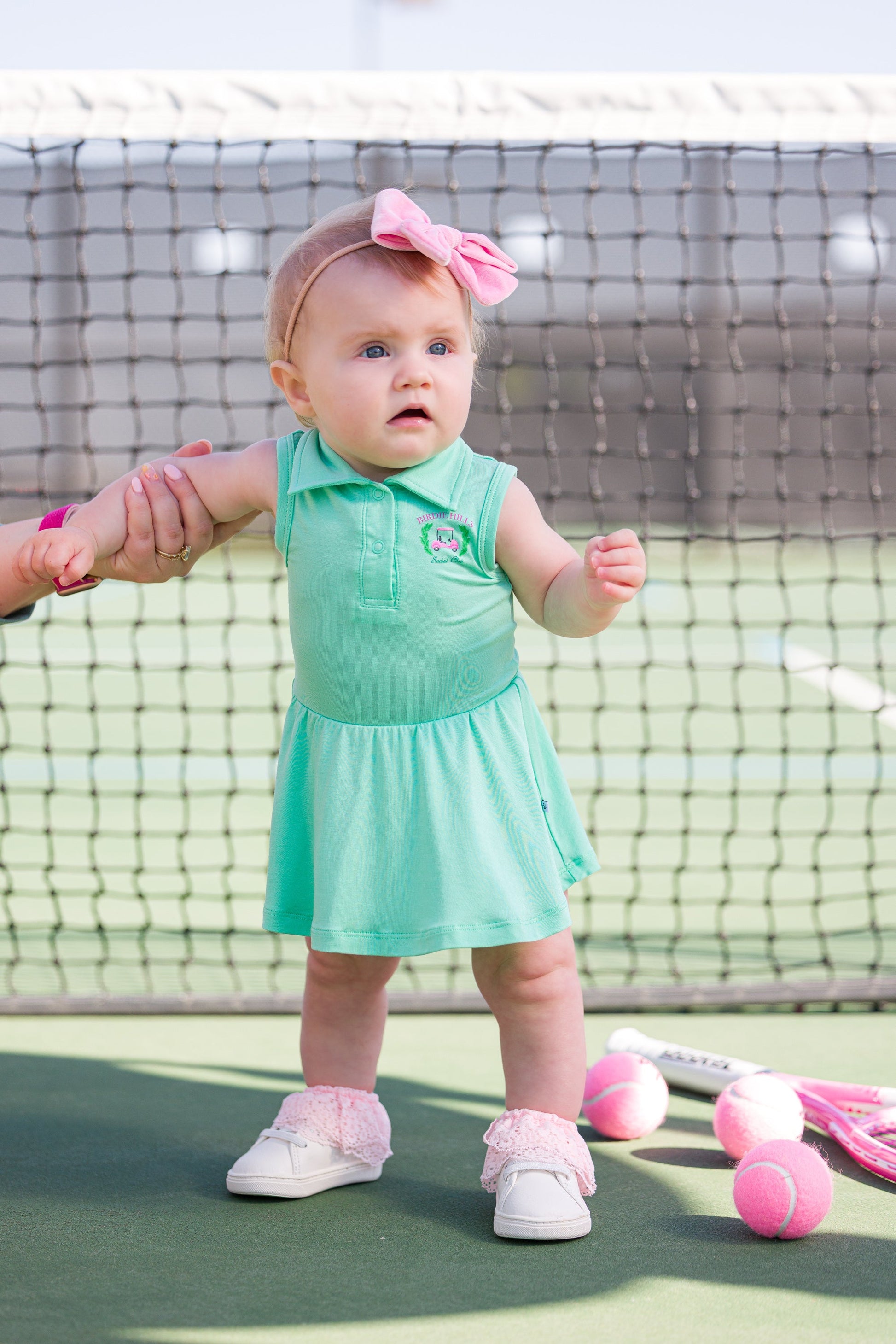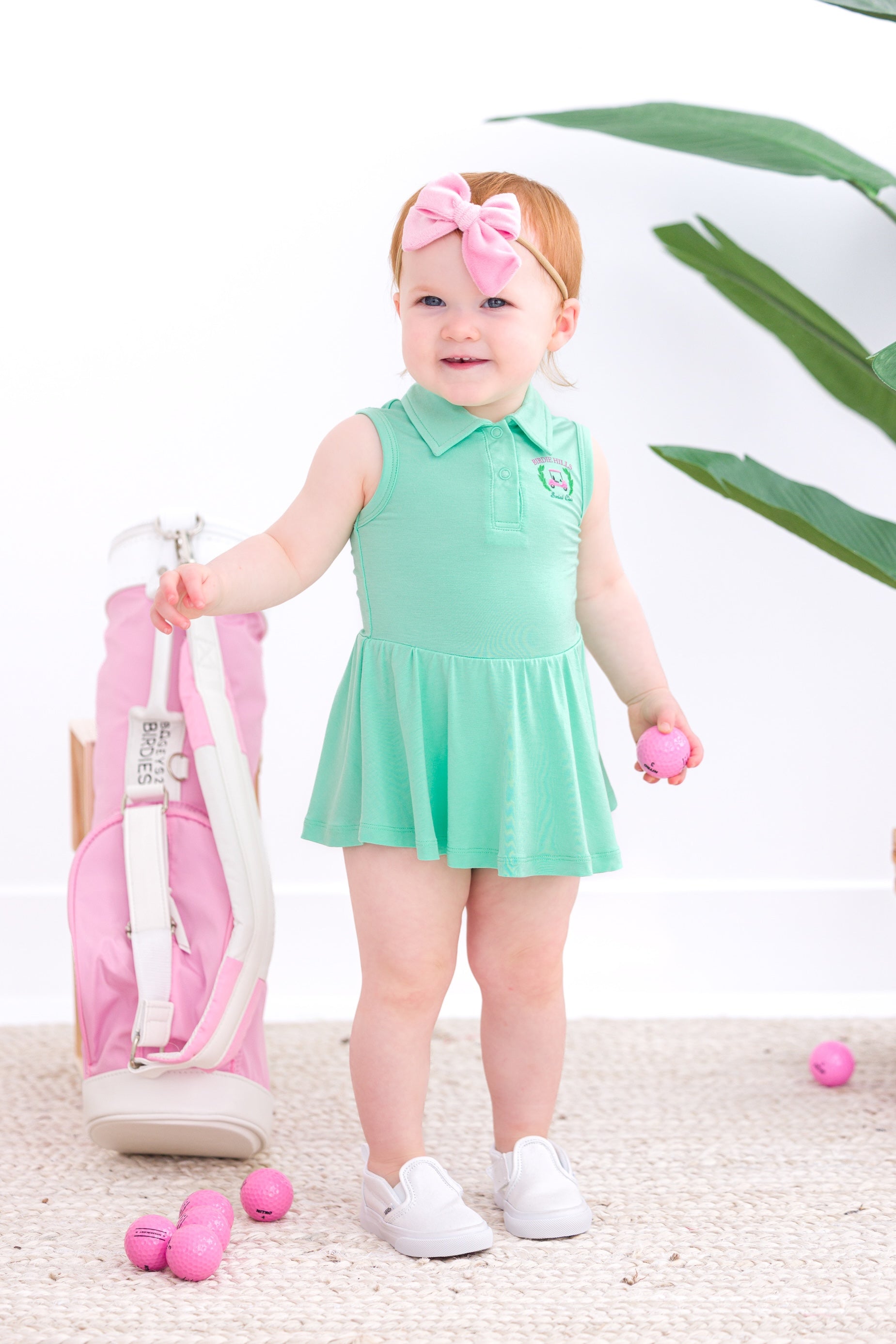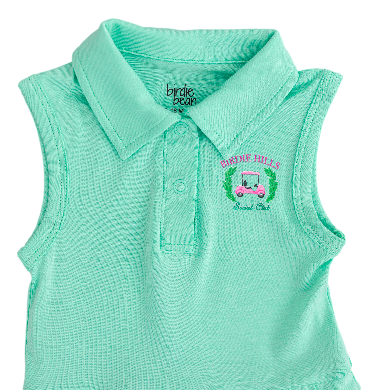 This sweet and sporty Birdie Hills Golf Club dress is made for your little one’s on-the-go adventures—from the playroom to the putting green. Crafted from our signature bamboo viscose and spandex blend, it offers breathable comfort, a gentle stretch, and all-day softness. With a classic collared polo neckline and a twirl-worthy skirt, it’s perfect for everyday play with a polished twist!