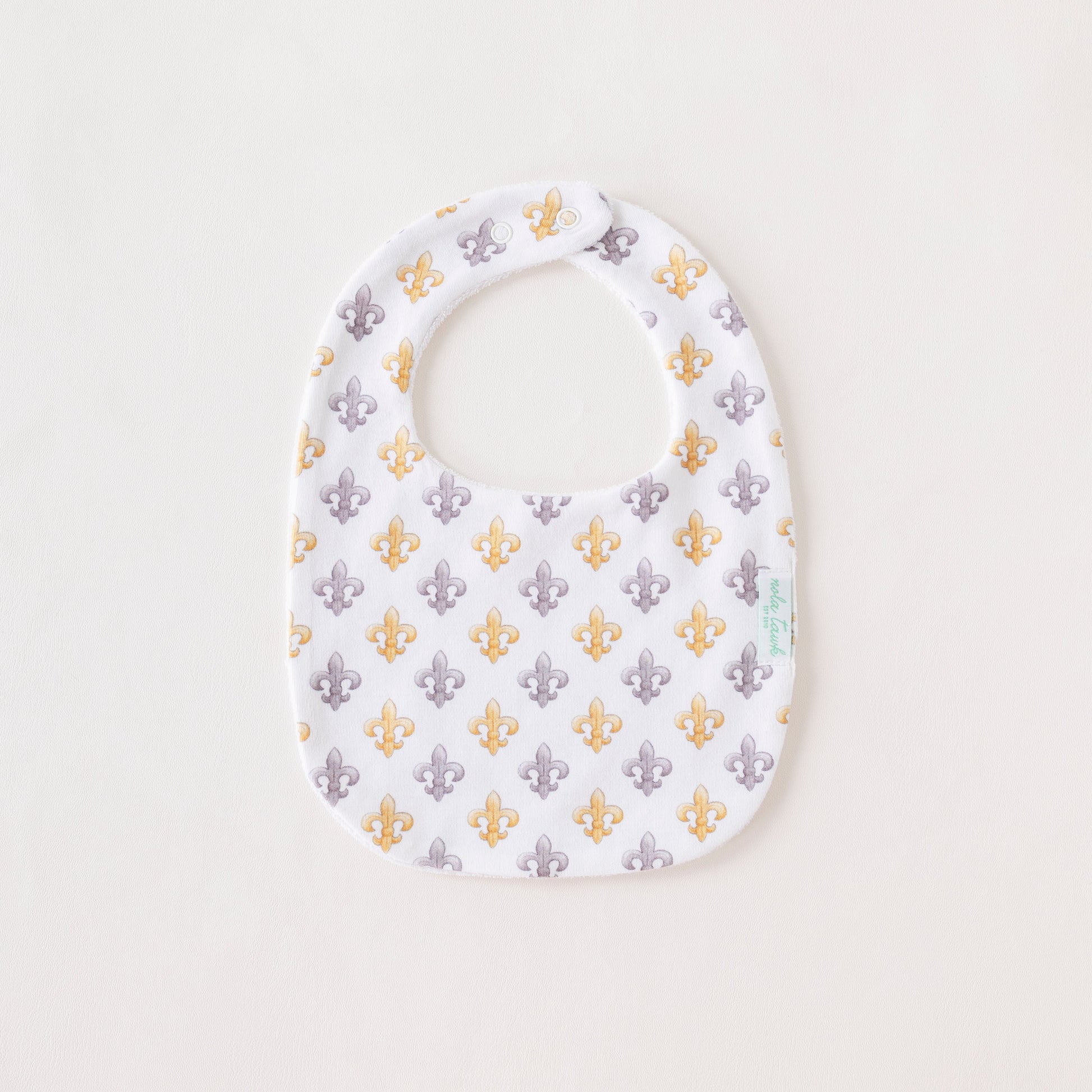 Bring a touch of New Orleans to mealtime with our Black and Gold Fleur de Lis Organic Cotton Baby Bib! With its stylish fleur de lis print and absorbent terrycloth back, it’s as functional as it is adorable.