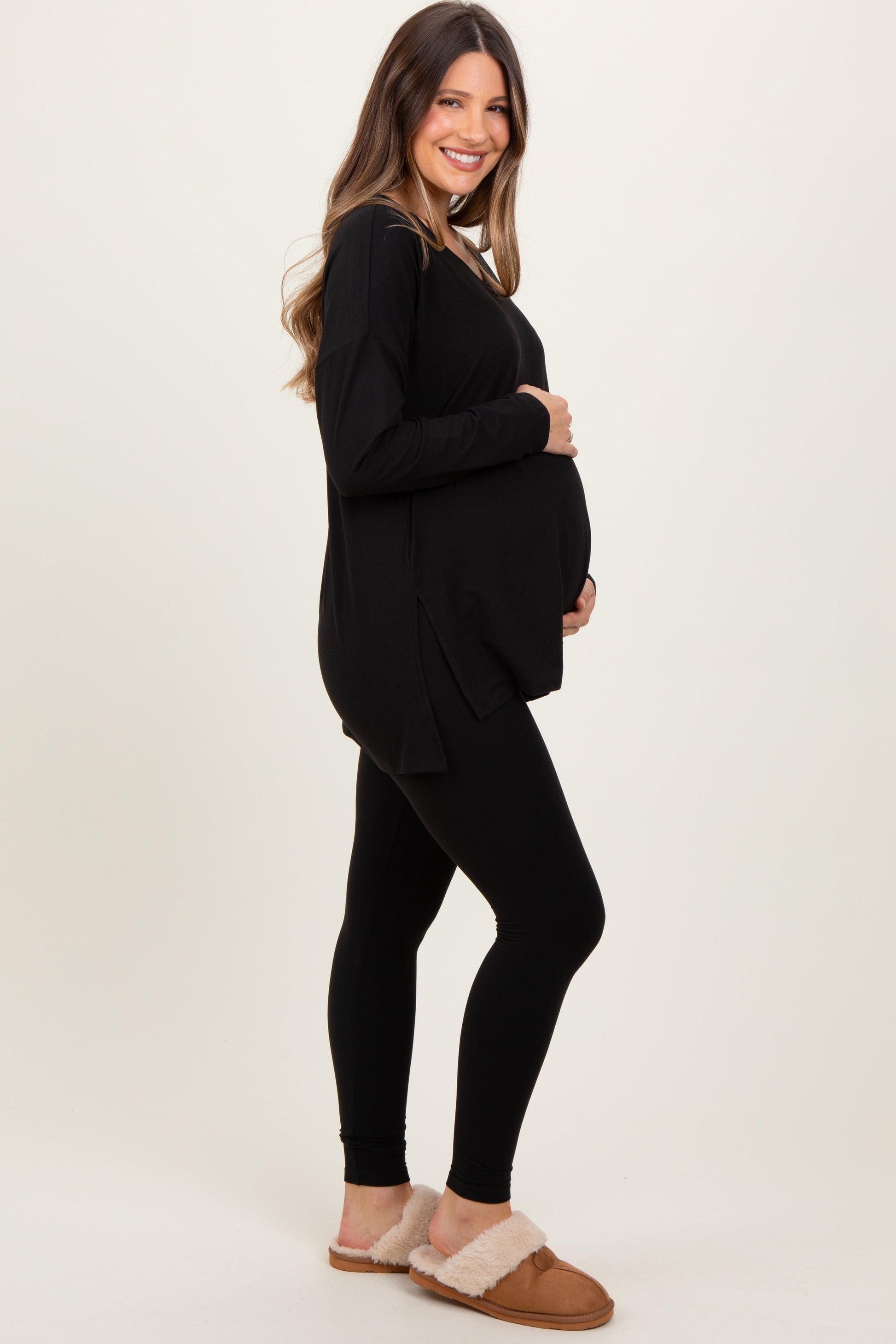 Black Brushed Knit Maternity Oversized Top and Legging Set