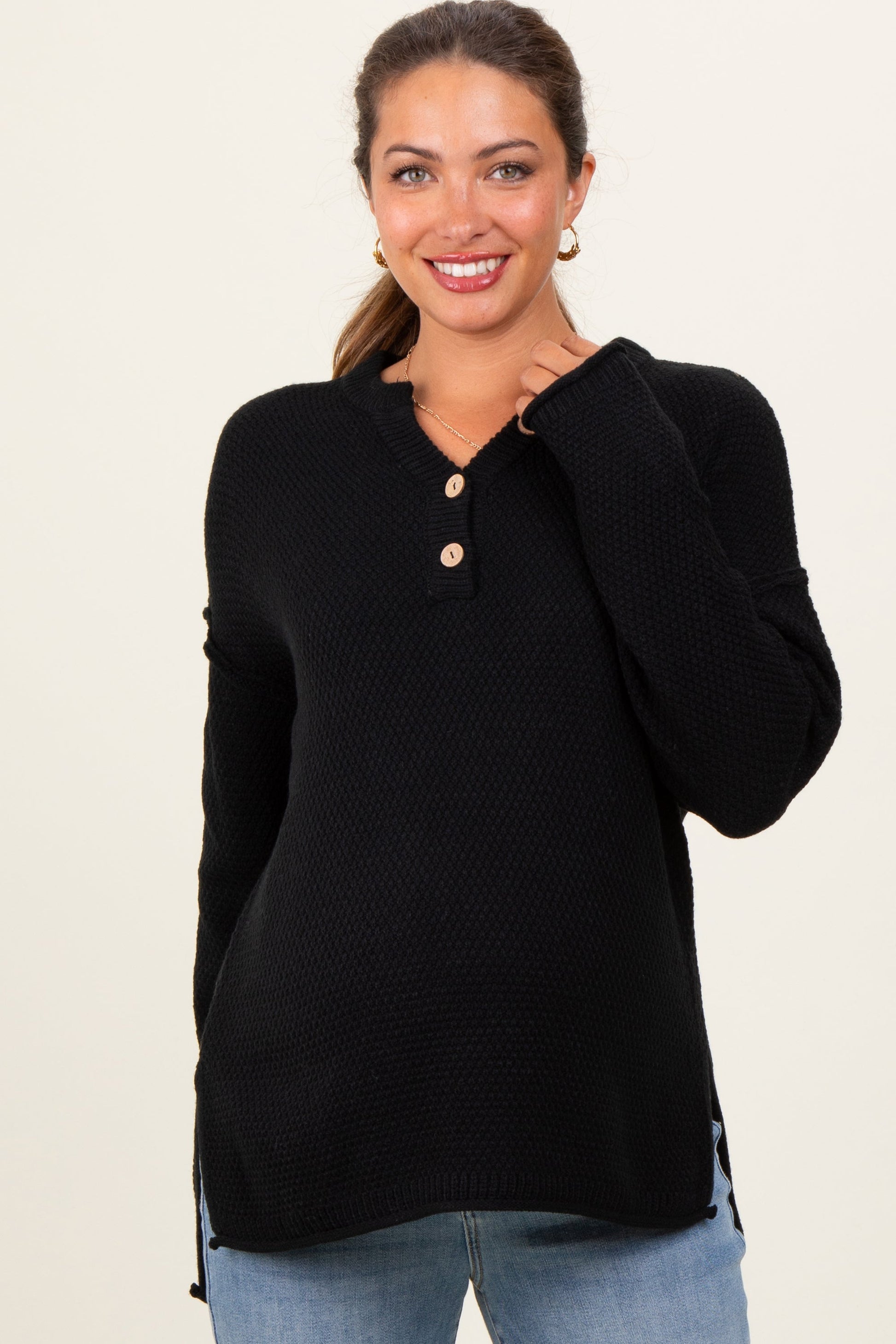 Black Diamond Knit Button Detail Maternity Sweater