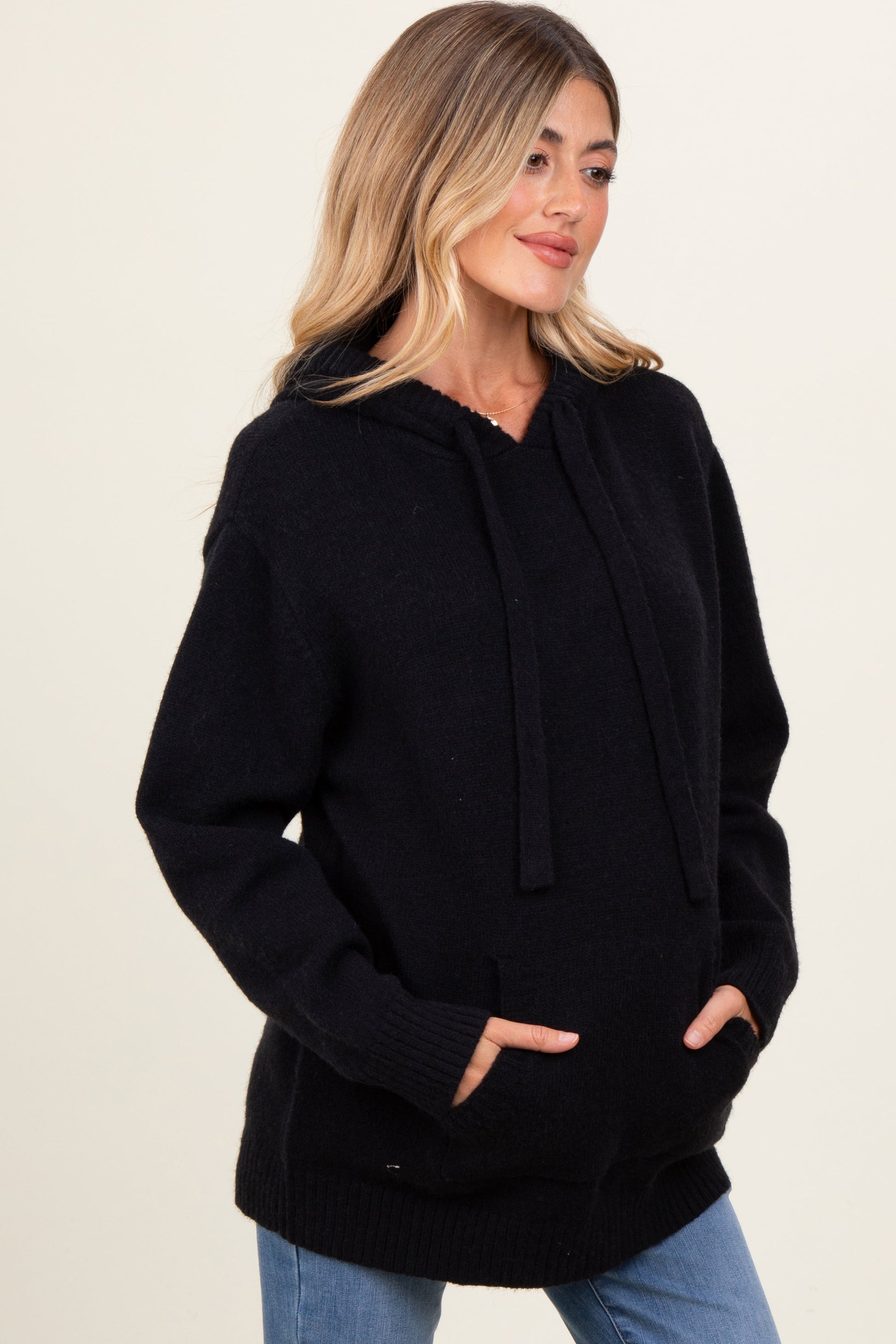 Stay cozy and stylish throughout your pregnancy with our Black Knit Front Pocket Hooded Maternity Sweater. Crafted from a soft, stretchy knit fabric, this sweater offers a comfortable and relaxed fit that accommodates your growing bump. Featuring a classic hood with adjustable drawstrings and a practical front kangaroo pocket for added warmth and convenience, it’s perfect for casual days or layering. The ribbed cuffs and hem provide a snug fit to keep warmth in, while the versatile black color pairs effortlessly with any maternity bottoms. Ideal for fall and winter, this sweater is a maternity essential for cozy, everyday wear.
