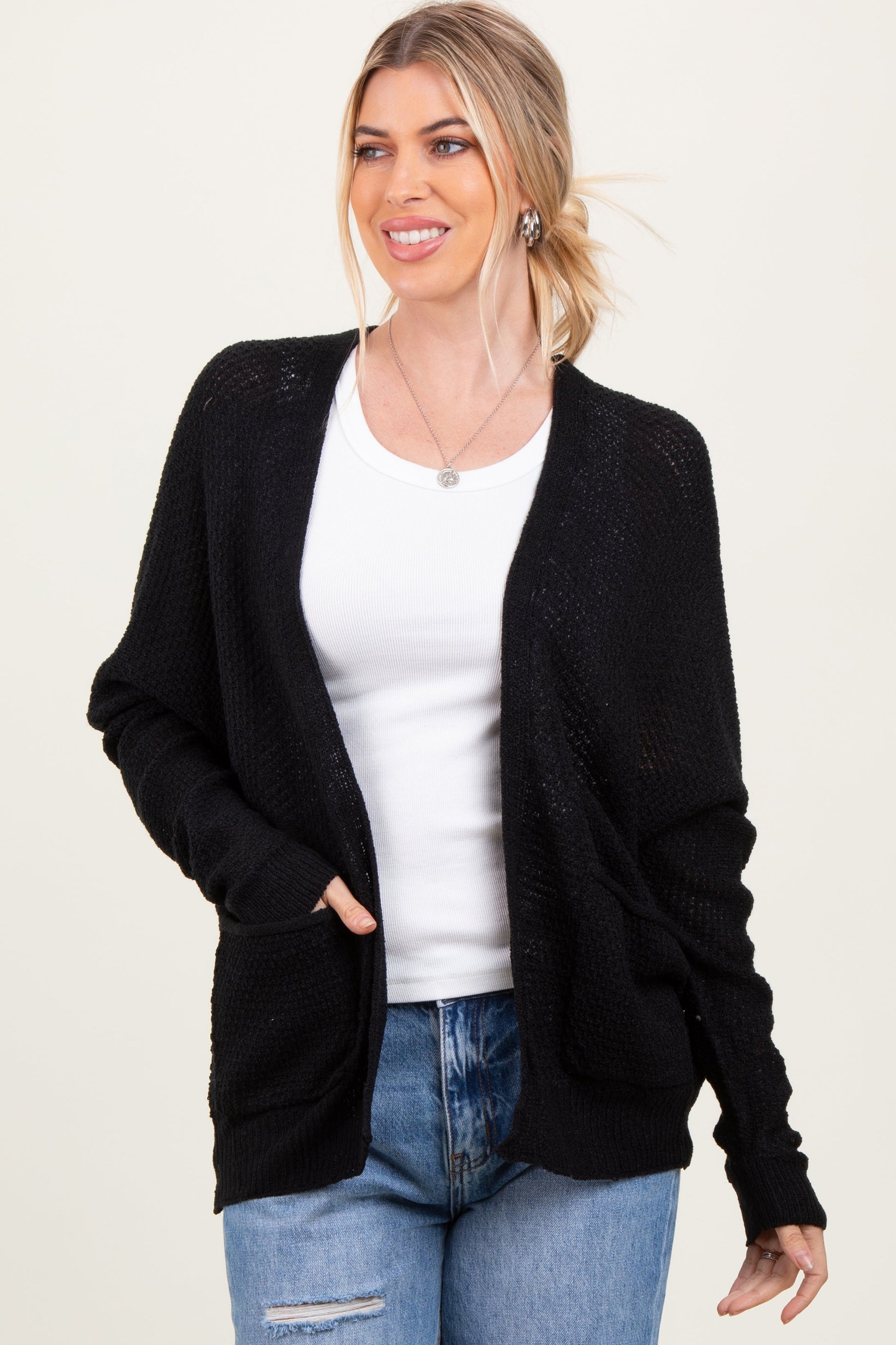 Stay cozy and stylish with our Black Pocketed Open Cardigan. This versatile piece features a relaxed fit, making it perfect for layering over your favorite tops. Soft, breathable fabric ensures all-day comfort, while the open front design offers effortless style. Two convenient front pockets add a practical touch, ideal for keeping essentials close or simply warming your hands. Pair it with jeans or leggings for an easy, casual look that transitions seamlessly from day to night. A must-have staple for your wardrobe, blending comfort and chic in one perfect cardigan.