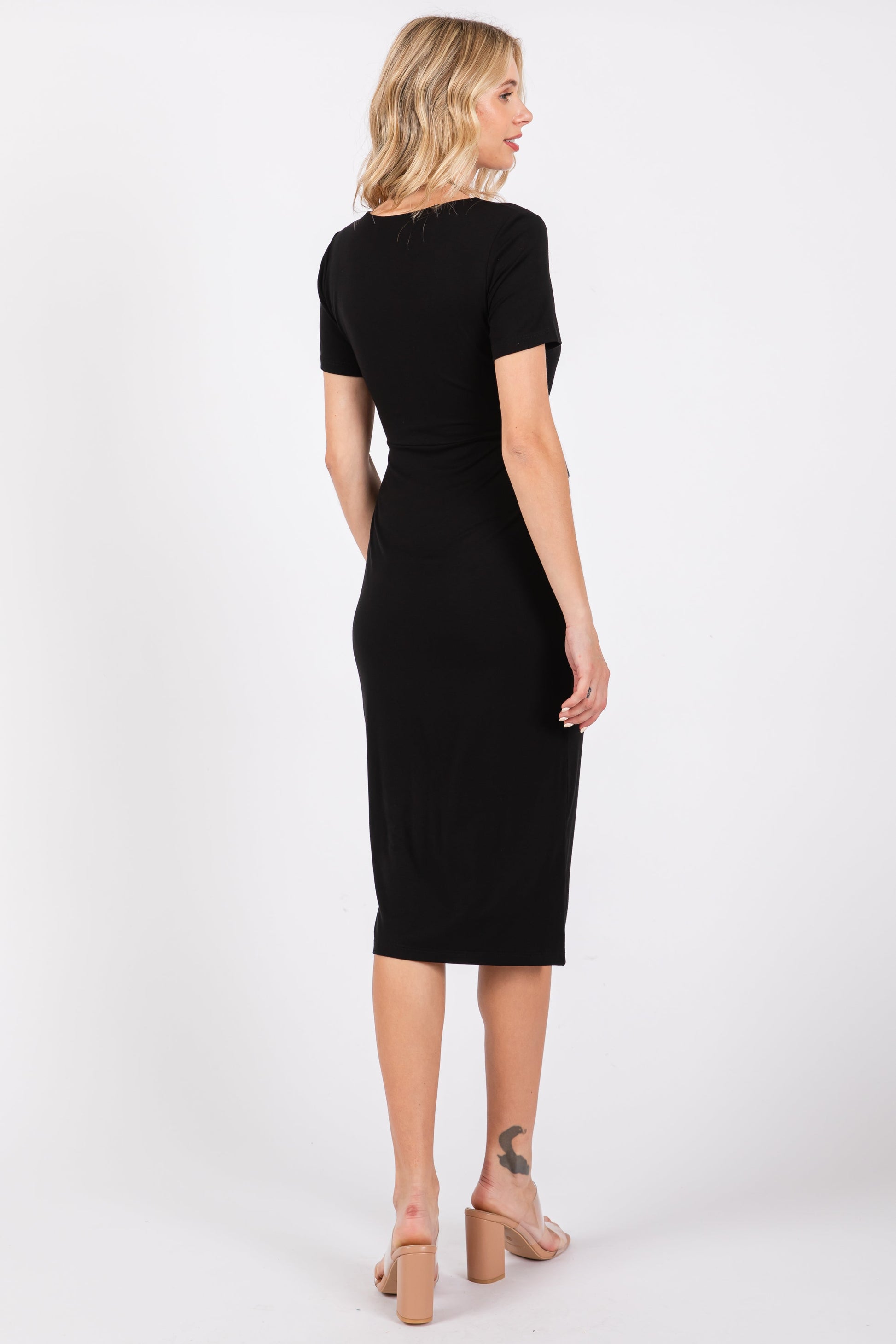 Black Square Neck Belted Midi Dress