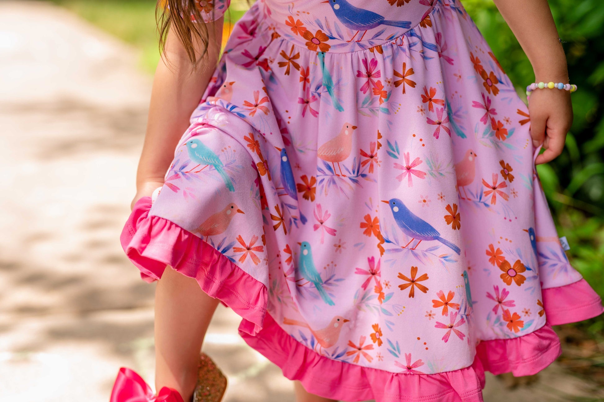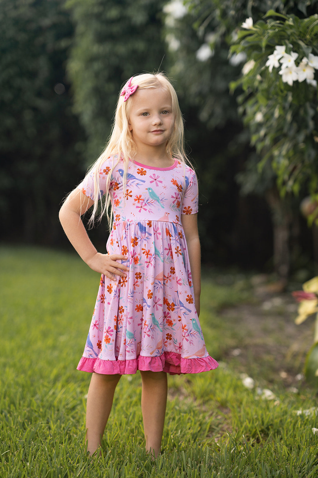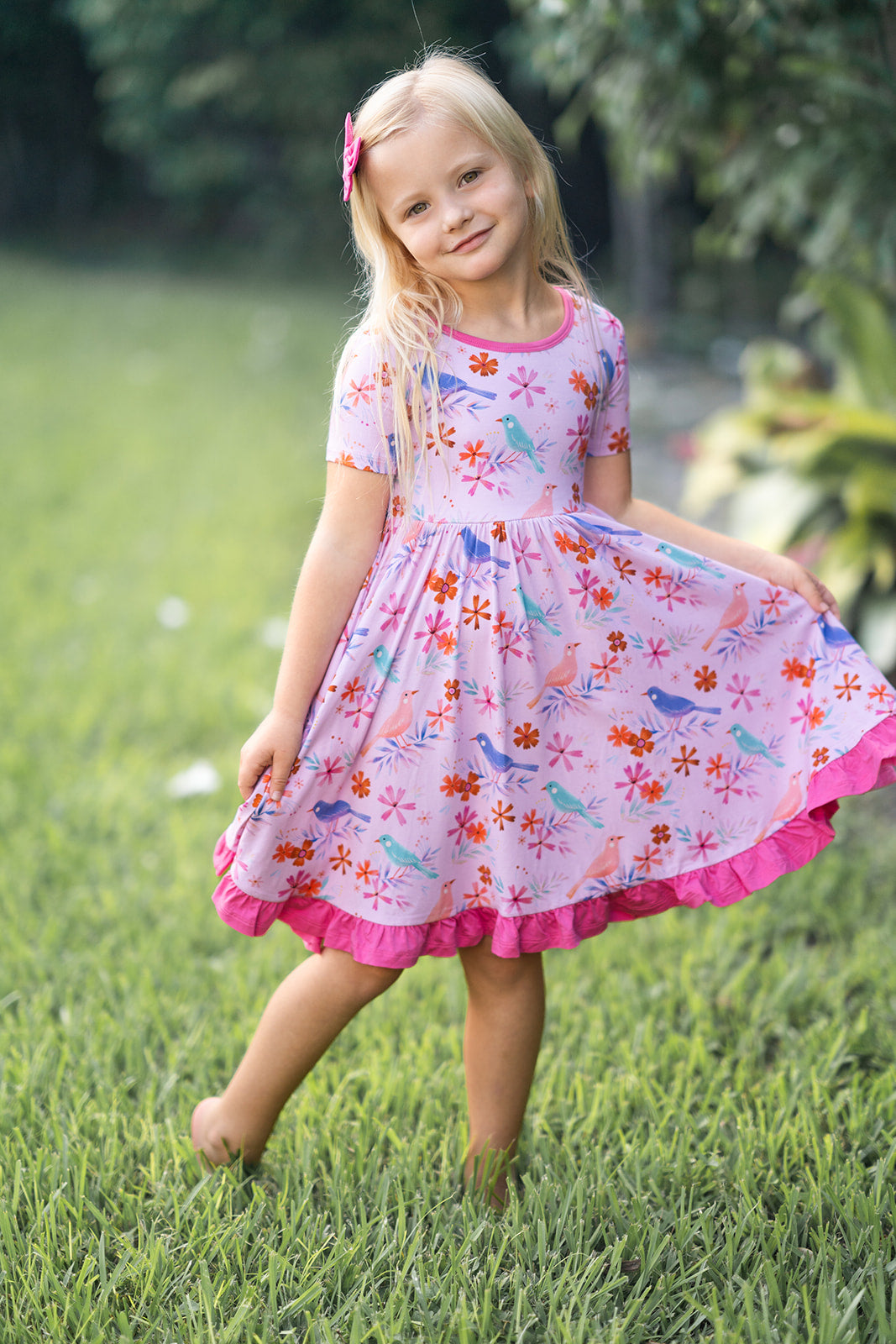 Blooming Birds | Toddler & Girls Bamboo Ruffle Twirl Dress