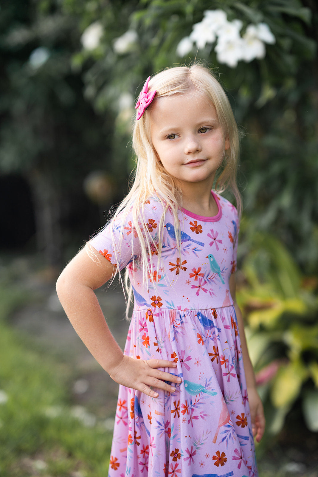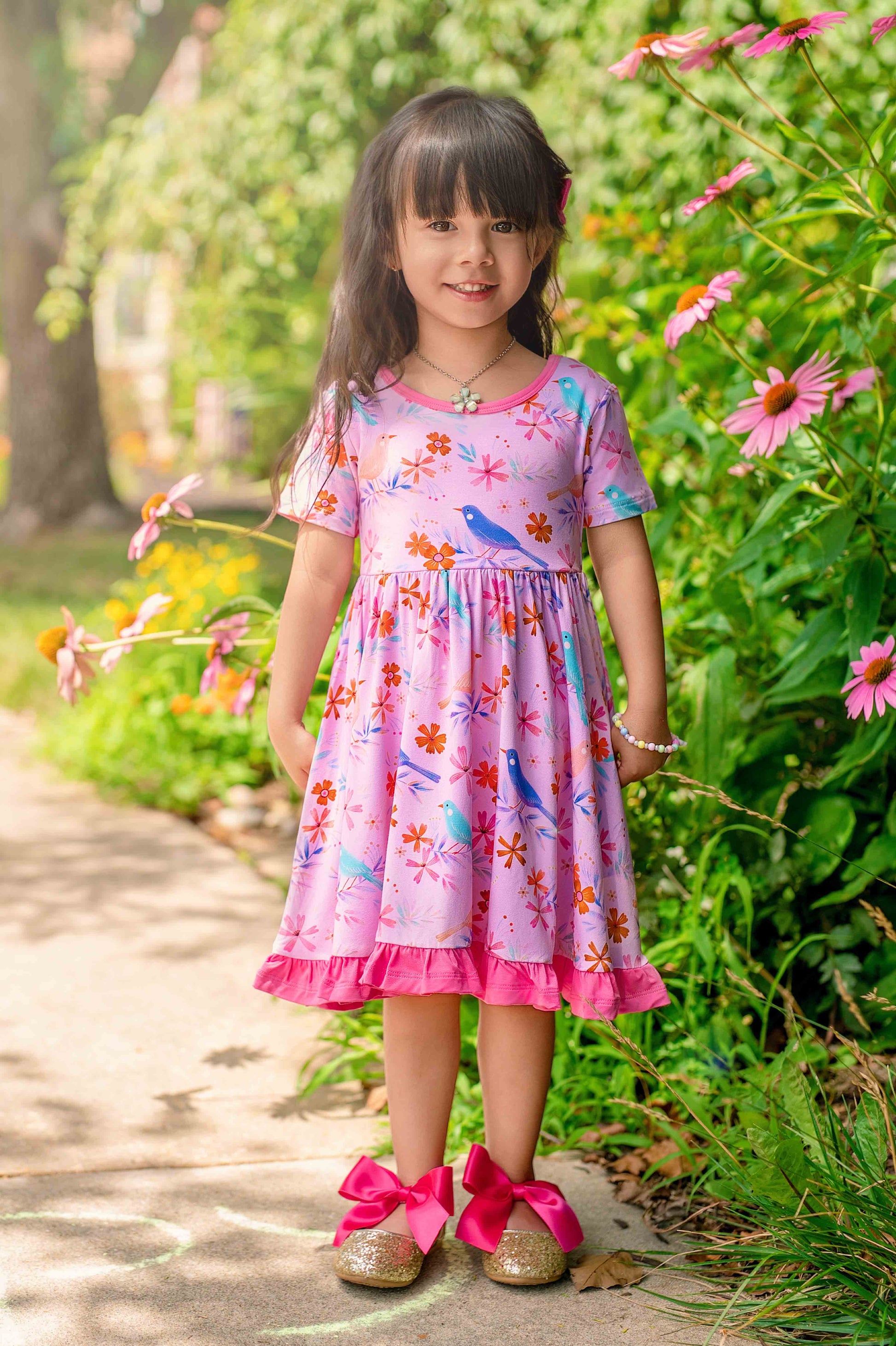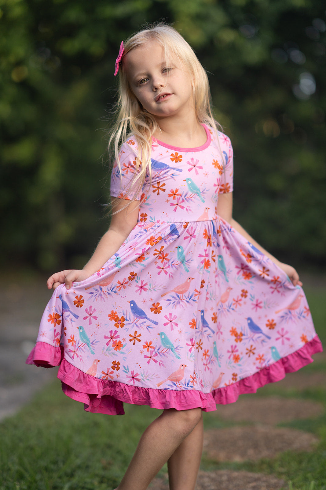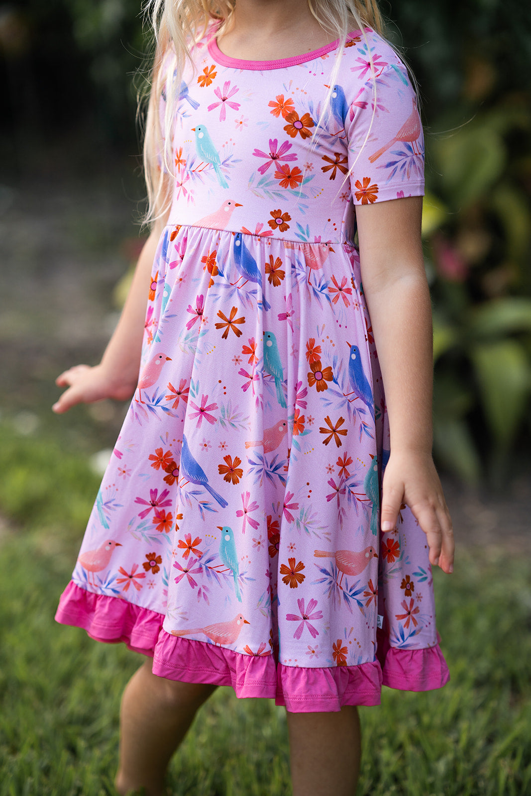 Blooming Birds | Toddler & Girls Bamboo Ruffle Twirl Dress