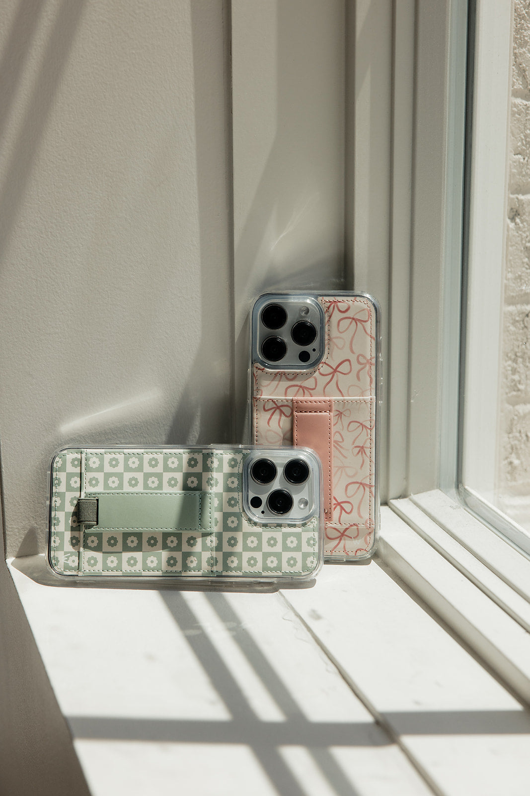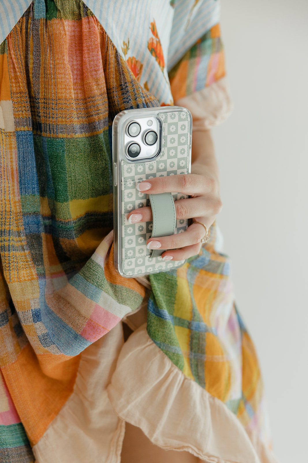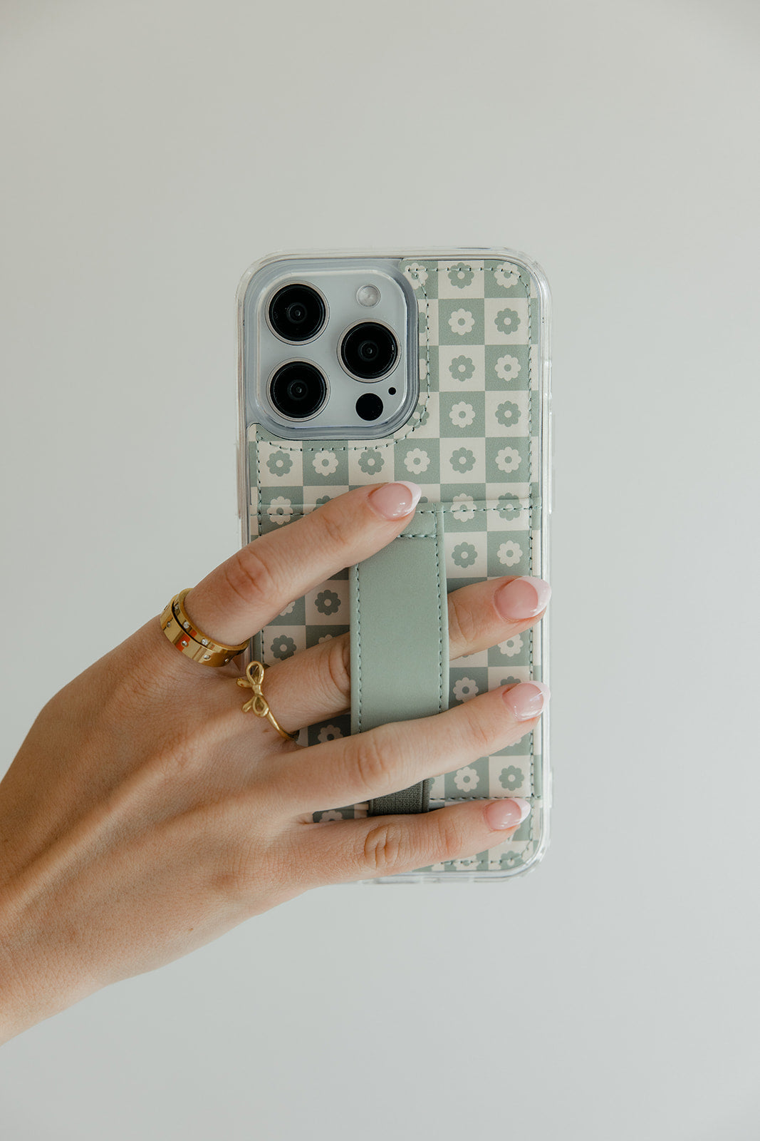 Case Design: Sage and cream floral checker pattern