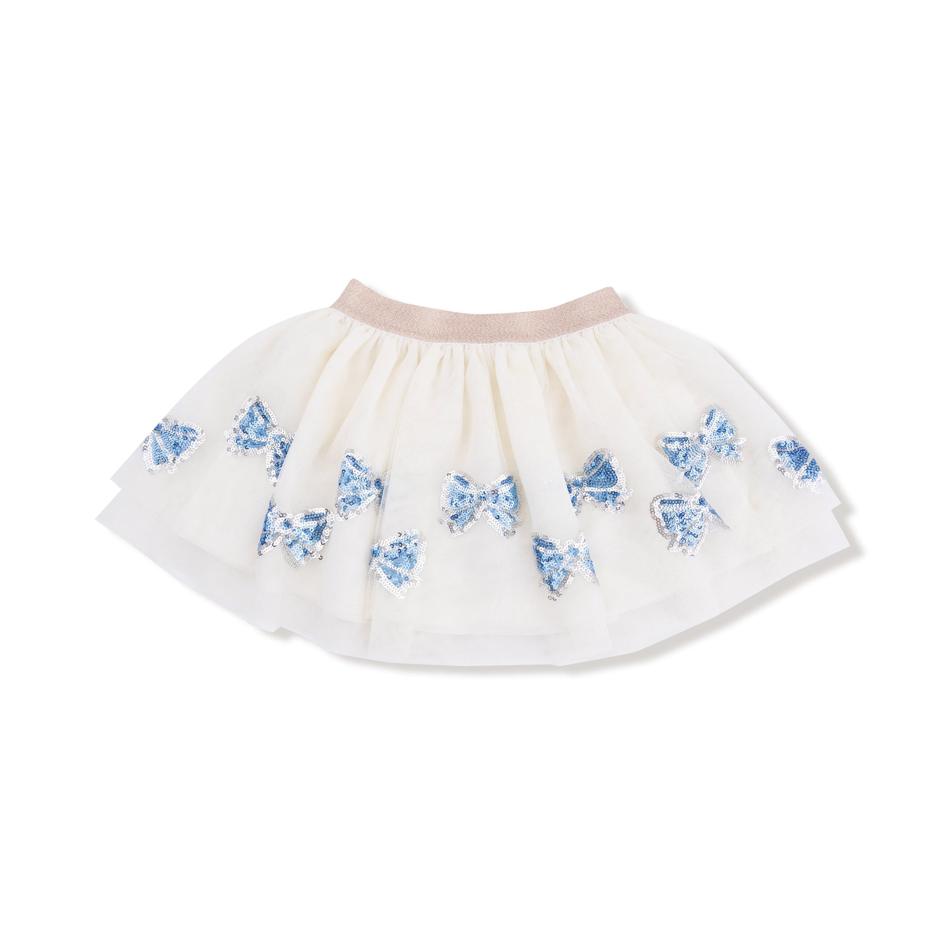 Twirl into style with our Romi Floral Tutu Skirt, bursting with delicate floral layers and sparkling blue bow sequin appliques. The shimmering silver waistband adds just the right amount of shine, making every moment feel extra special and perfectly playful.