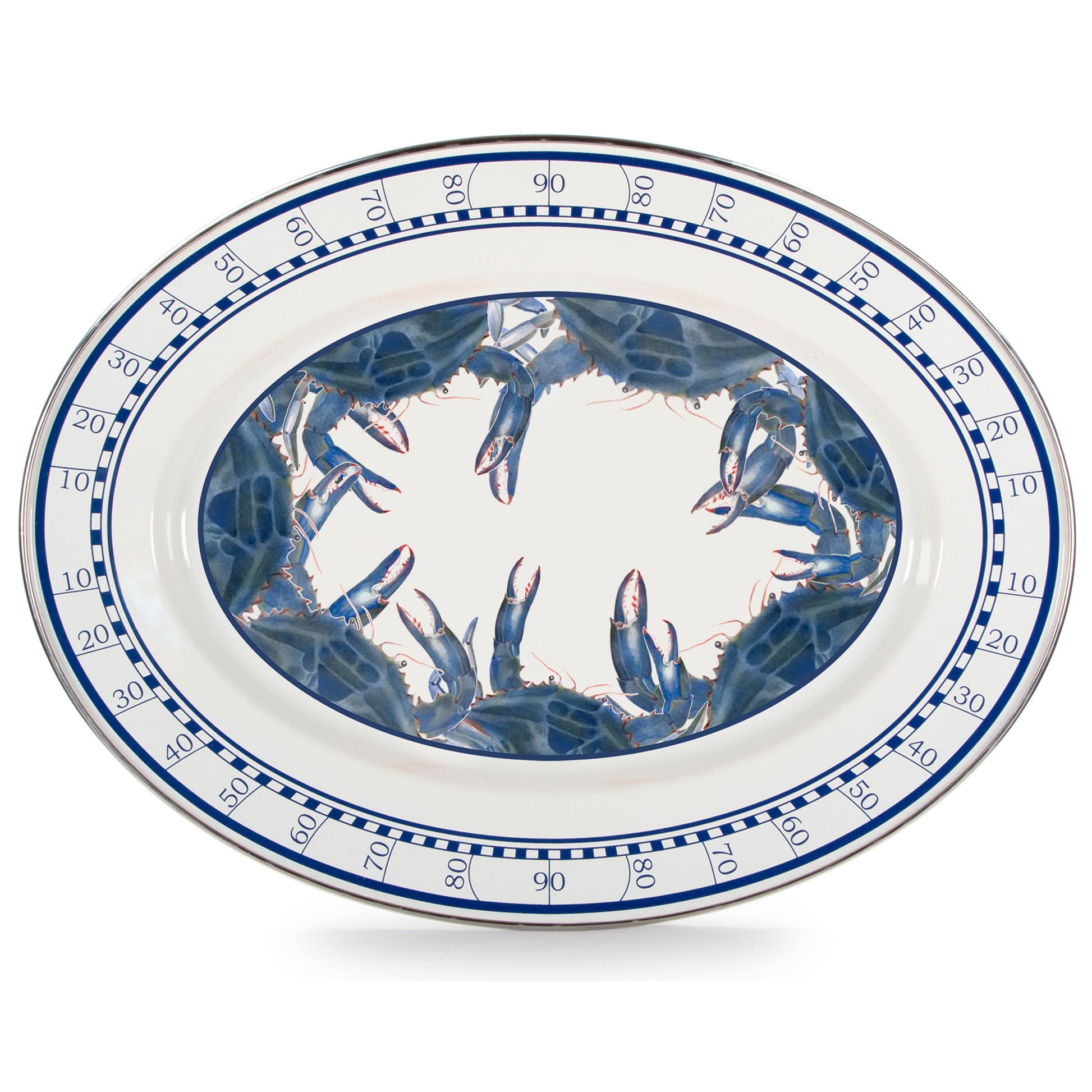 Elevate your dining experience with the Blue Crab Oval Platter. Crafted from durable enamelware, this beautifully designed platter features a lively blue crab motif, making it perfect for serving seafood or showcasing your favorite dishes with a touch of coastal charm.