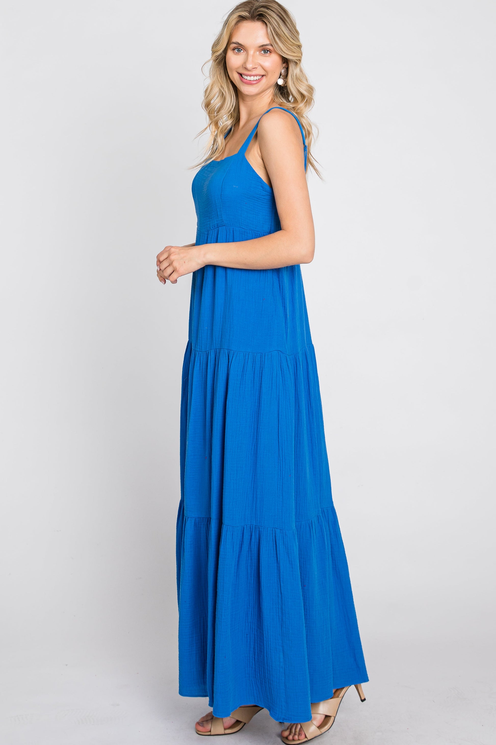 Blue Sleeveless Ruffle Tiered Maxi Dress