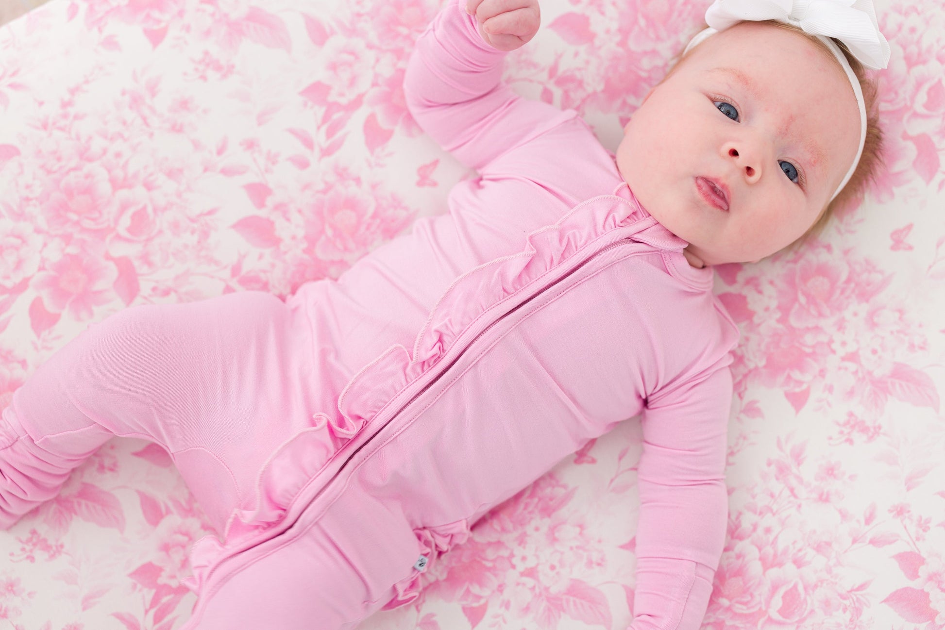 - Ruffles are only on the back of sizes Preemie to 3-6M.