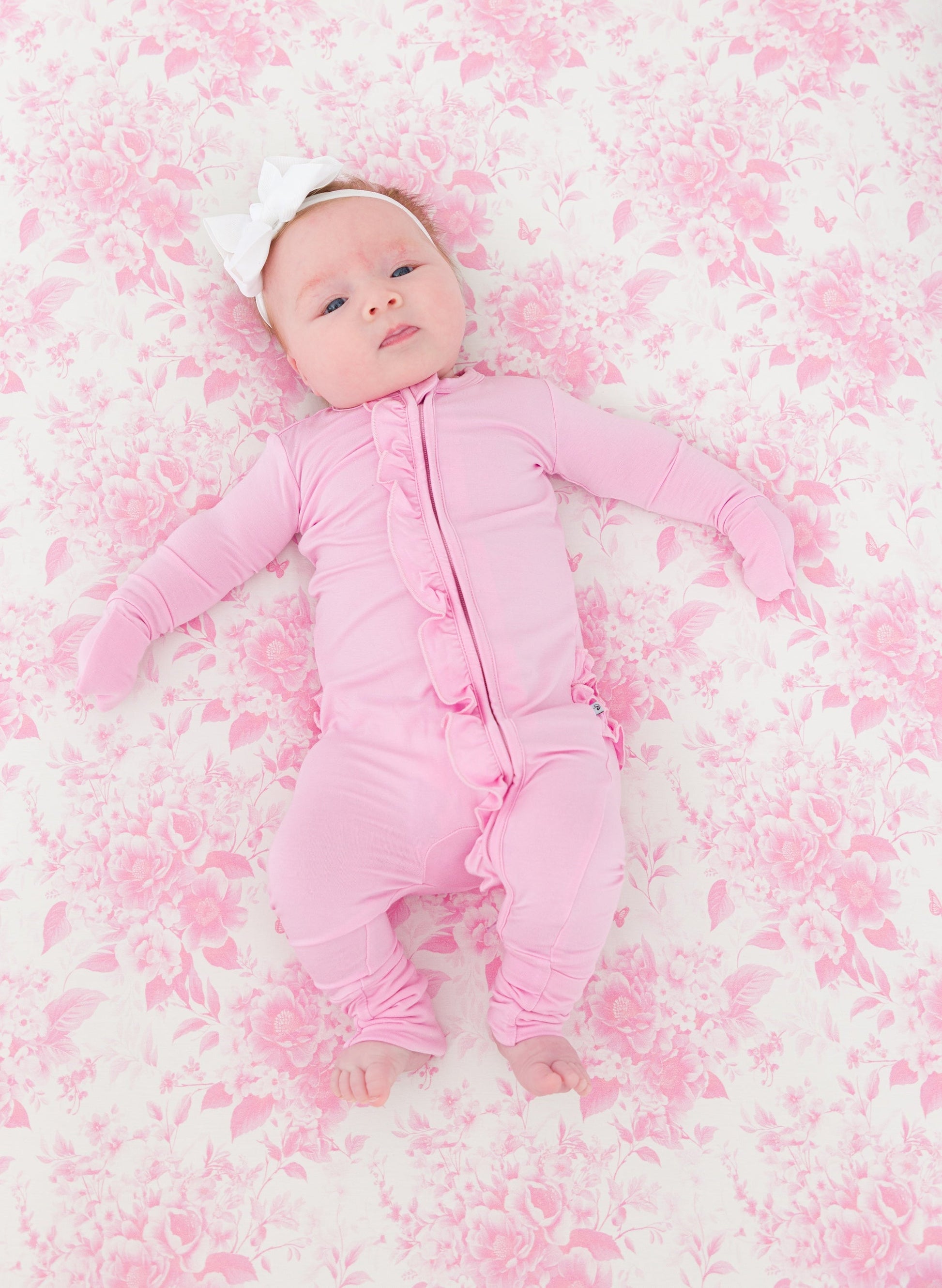 Why choose between a romper and a footie when you can have both in one adorable piece? This versatile romper converts into a footie with fold-over feet cuffs, giving you all the flexibility you need! Made from irresistibly soft bamboo viscose with a hint of spandex, this piece combines cuteness and comfort, and our 2-way zipper makes diaper changes effortless.