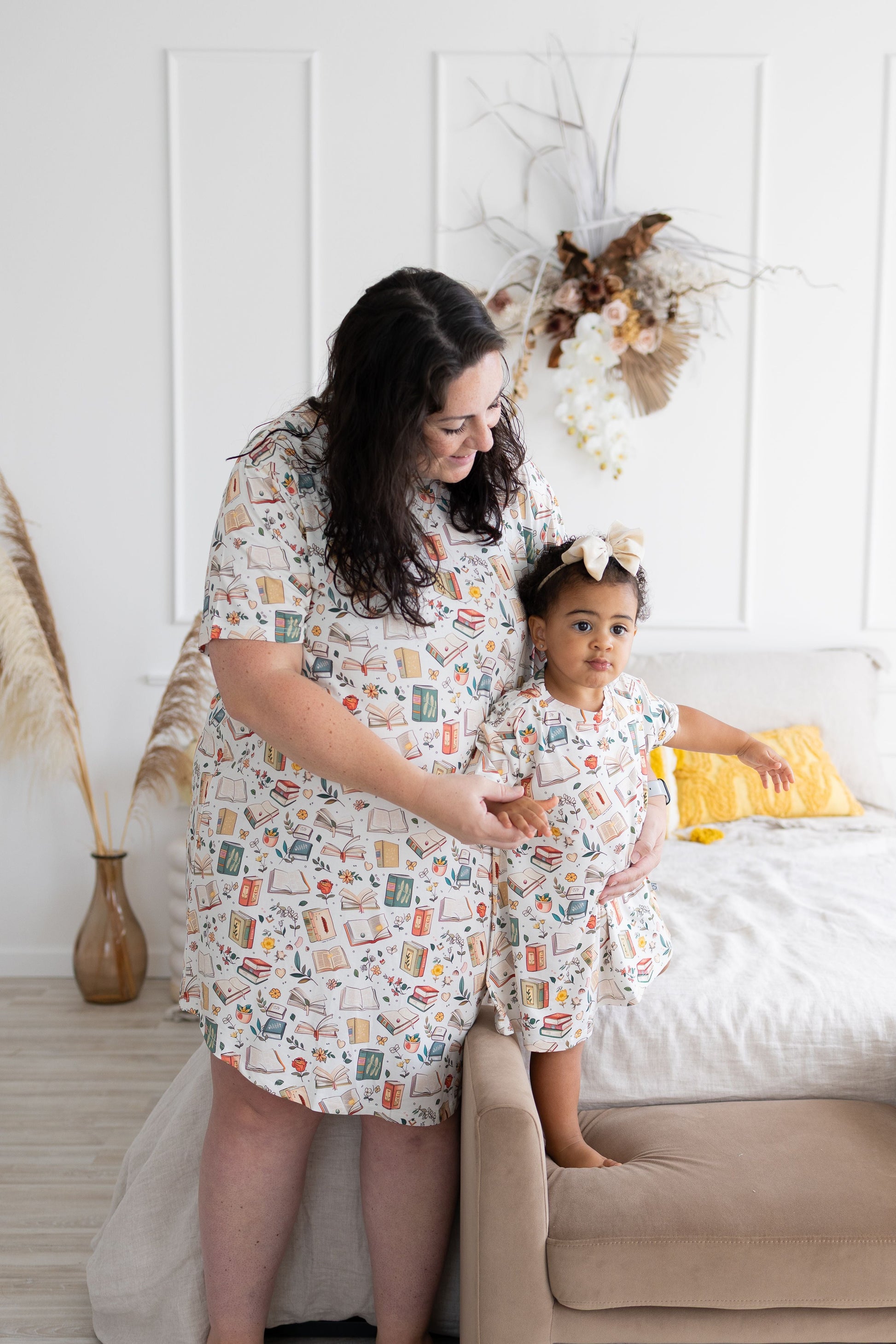 Cozy up with your favorite book in our Book Club Women’s T-Shirt Dress—where effortless comfort meets literary charm. Made from our signature buttery-soft bamboo fabric, this breathable, stretchy dress is perfect for slow mornings, afternoon reads, or curling up at night. Featuring our whimsical, vintage-inspired Book Club print with stacks of stories and delicate floral accents, this relaxed-fit dress falls just right for lounging or layering. Whether you're deep into a new novel or just enjoying a quiet moment, this dress is the perfect uniform for book lovers.