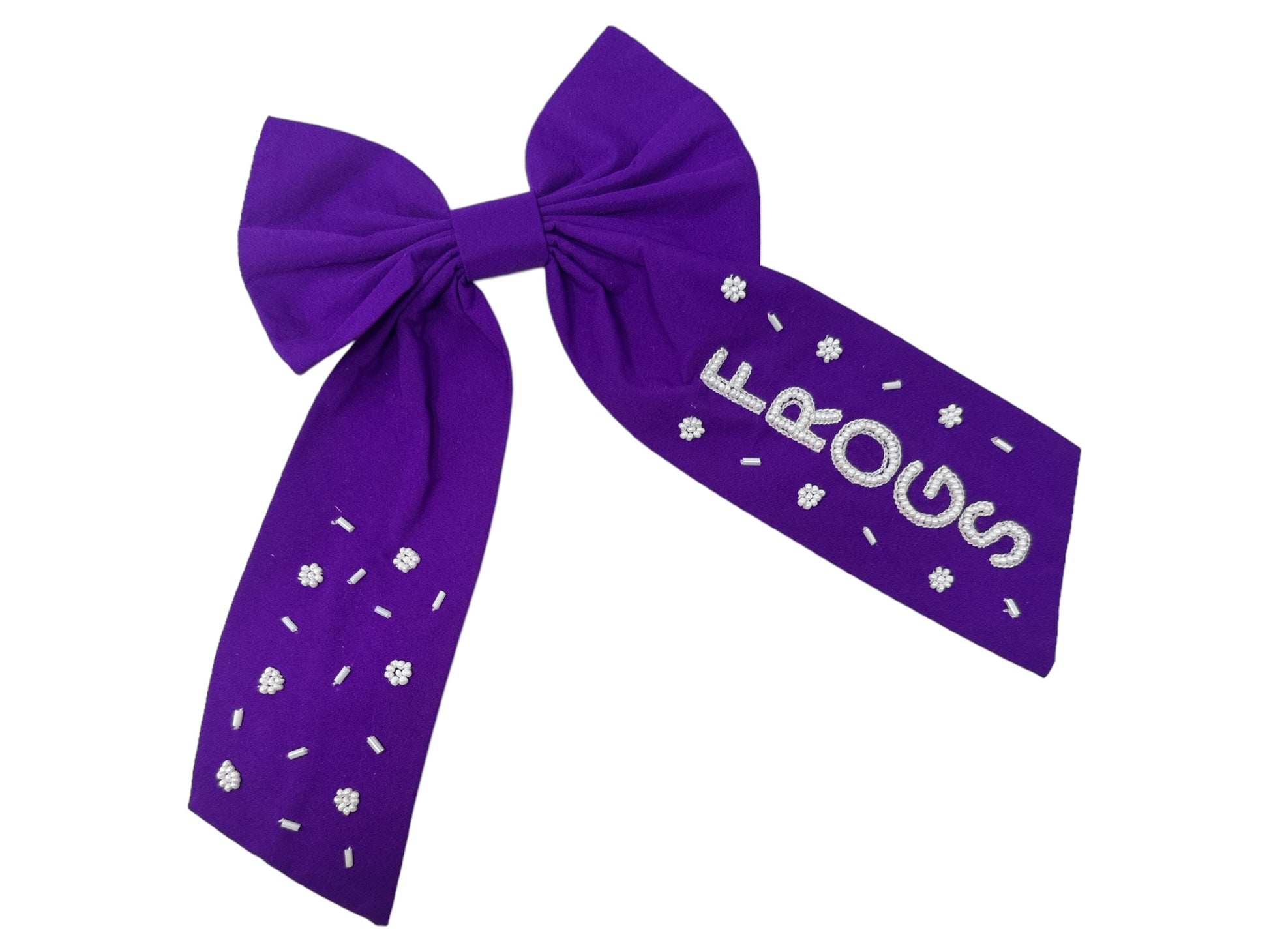 The cutest bow to cheer on the Frogs. Embellished with seed bead detail, this bow is a cute accessory to add to your Game Day look.