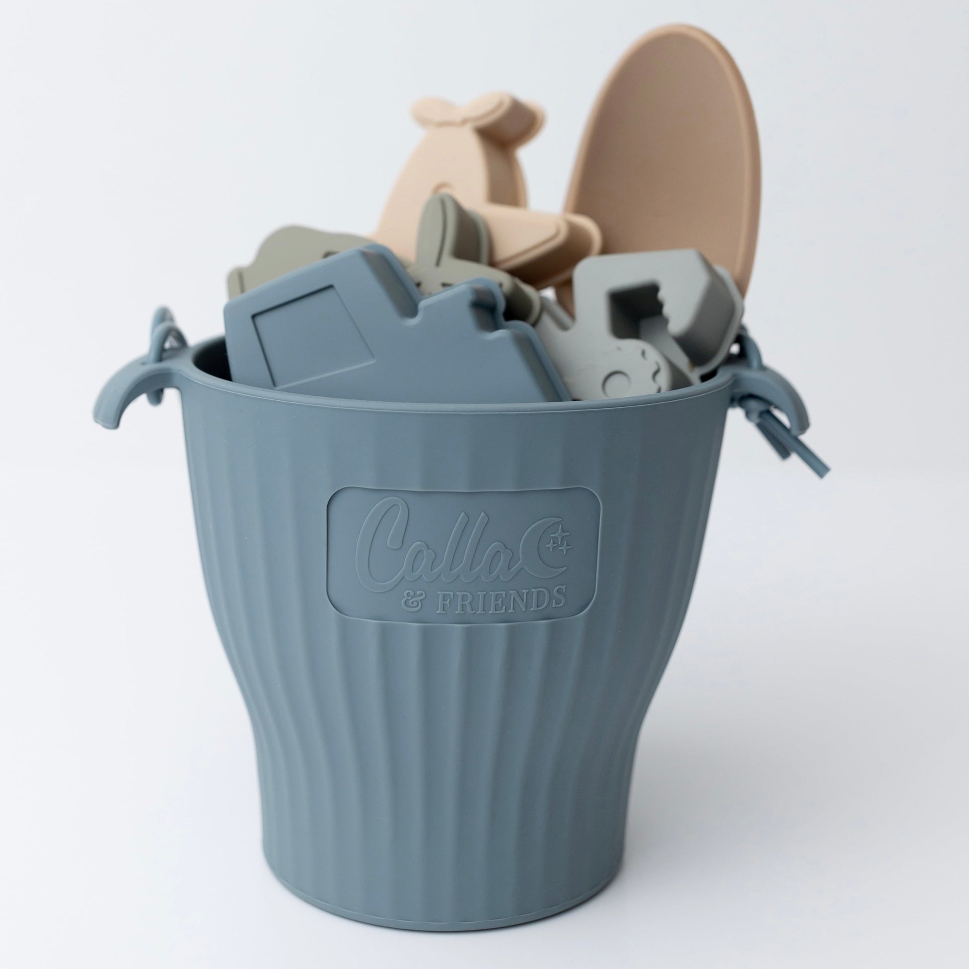 Each set includes: 1 bucket, 1 small shovel, 4 sand molds & an organic cotton storage bagÂ