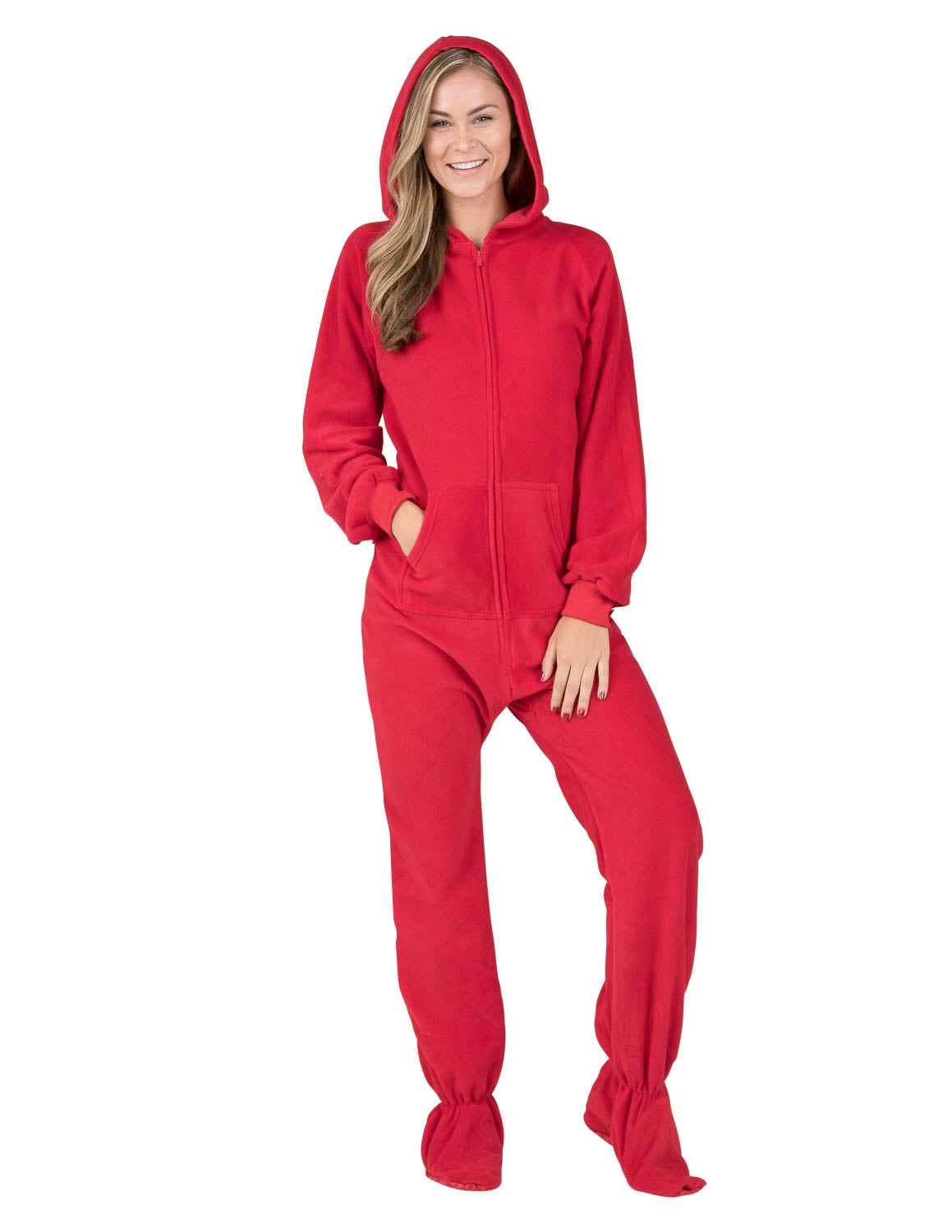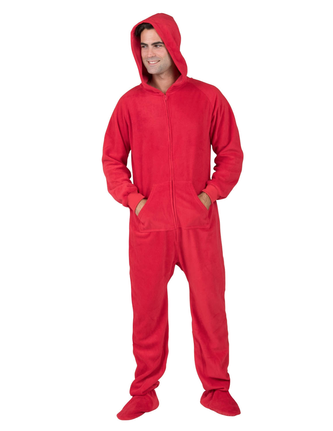 Pop into a pair of these bright red beauties! Classic, comfortable and fun! Both men and women of all shapes and sizes will fit right in with unisex design and plus size options! Zip up in the coziest, softest polar fleece hooded footed pj’s!