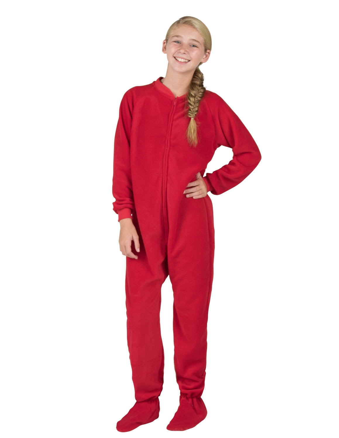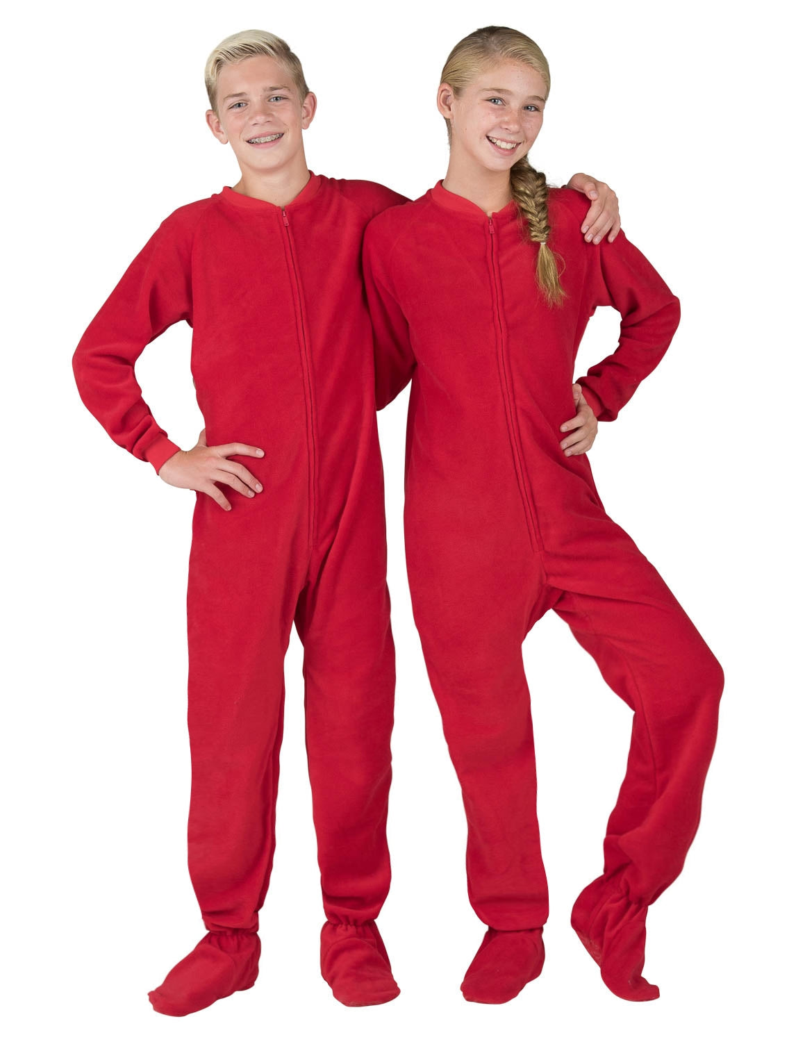 Pop into a pair of these bright beauties! Classic, comfortable and fun! These stylish and comfy red onesies for girls and boys make for sweet dreams! Zip up in the coziest, softest polar fleece footed pj’s!
