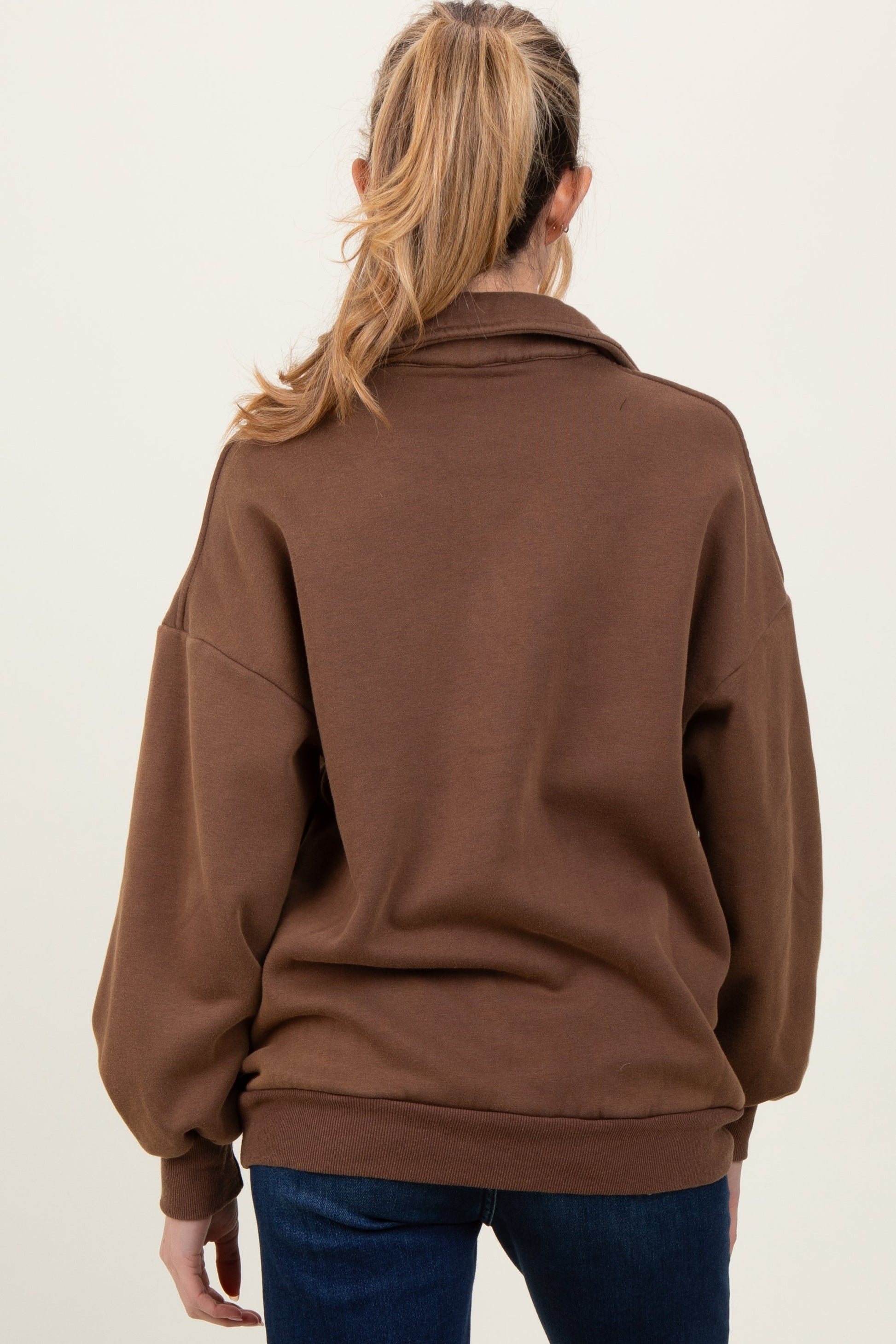 Brown Oversized Long Sleeve Polo Maternity Pullover