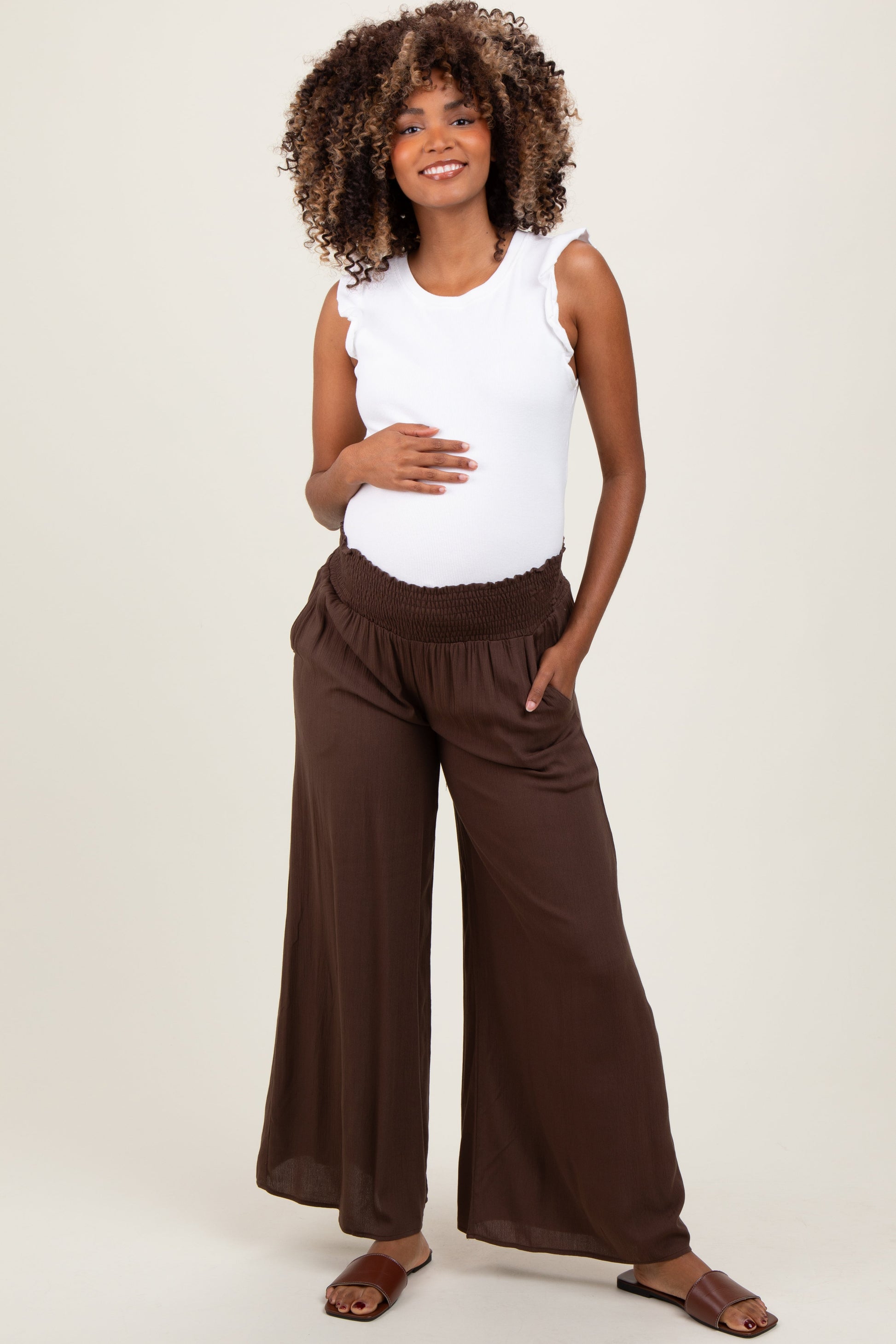 Experience ultimate comfort and style with our Brown Wide Smock Waist Maternity Pants. Designed with a stretchy smock waistband, these pants provide gentle support and adapt to your growing bump. The wide-leg cut ensures breathability and freedom of movement, perfect for everyday wear or relaxing days at home. Crafted from lightweight, soft fabric, these pants keep you comfortable throughout your pregnancy journey. Pair effortlessly with your favorite tops for a chic maternity look. Elevate your wardrobe with these versatile, flattering maternity pants that combine fashion and function beautifully.