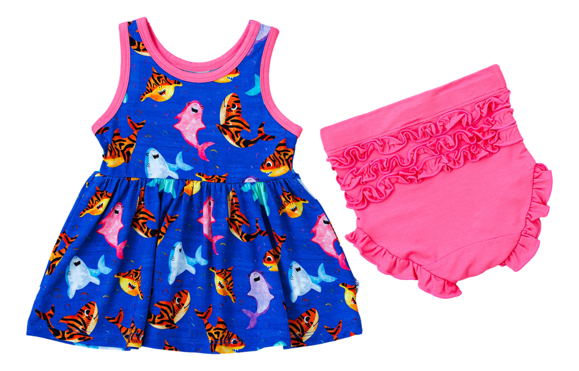 This outfit is designed using a lightweight blend of viscose from bamboo and spandex fabric, lending it exceptional softness and comfort with fantastic breathability. The adorable print makes it a great selection for any summer day!