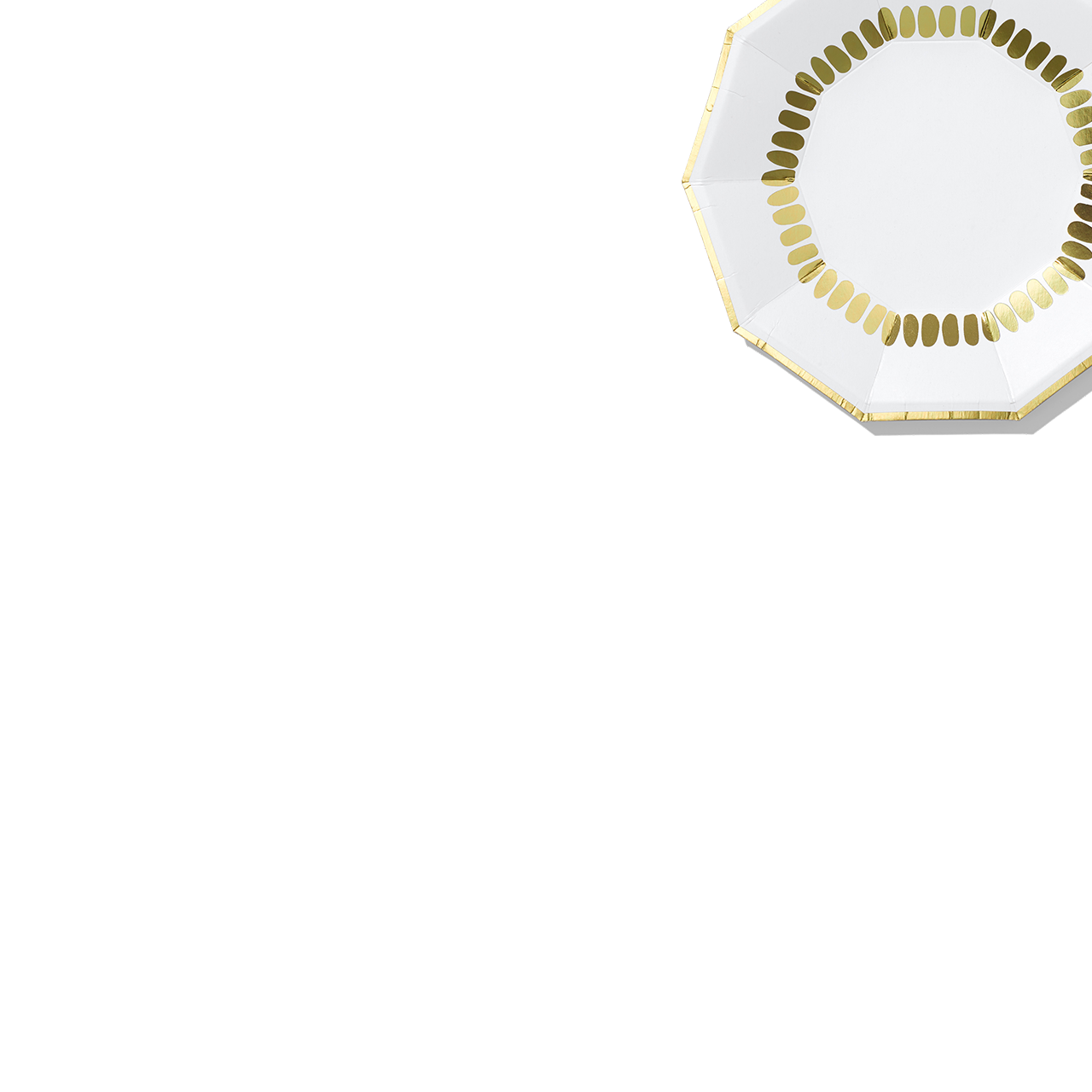 Equal parts decadent and minimalist, these glittery small plates pair white and gold to unforgettable effect. Includes 10 plates.