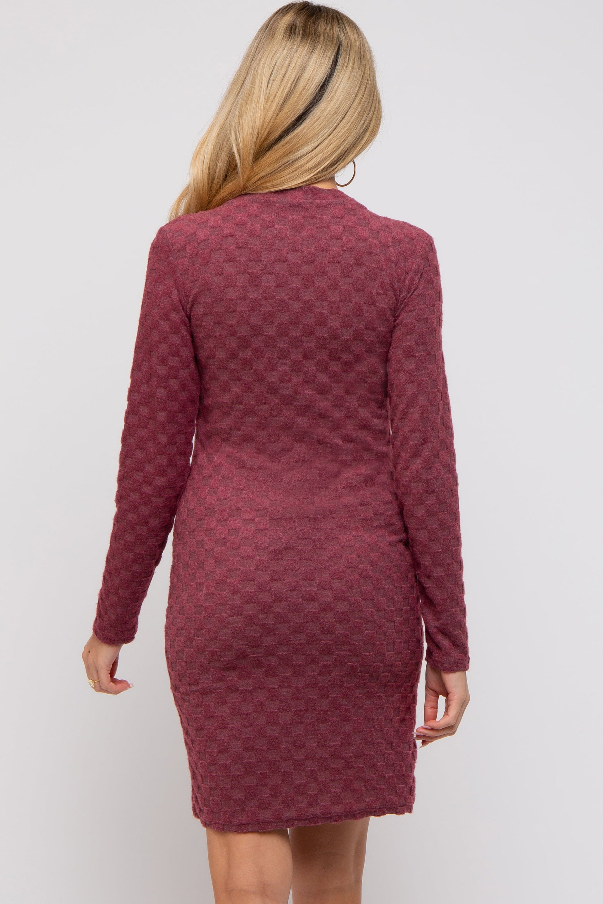 Burgundy Soft Brushed Knit Long Sleeve Maternity Dress