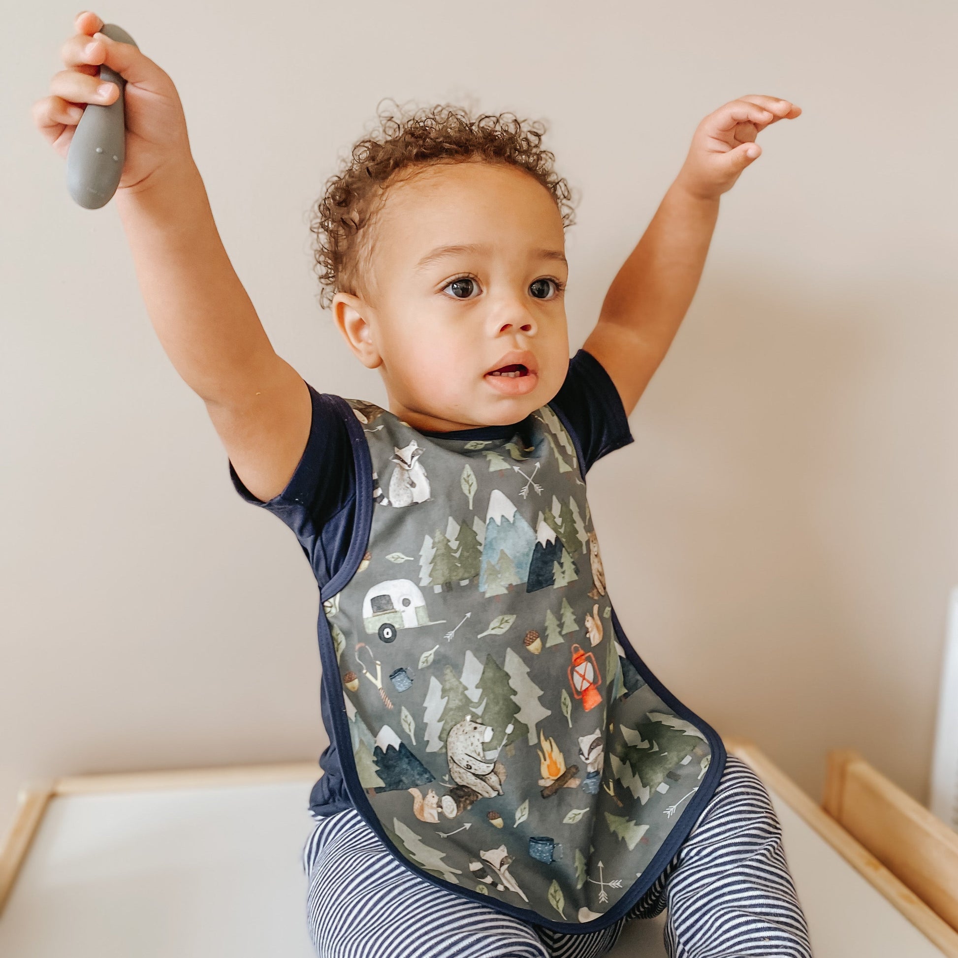 This best-selling “Bapron”, also known as a bib-apron hybrid, full-coverage bib, smock, or apron, is designed for comfort and safety. Because of their comfortable, secure-fitting horizontal ties and their full-coverage design, Baprons are the perfect companion for mealtime, art, and sensory play!