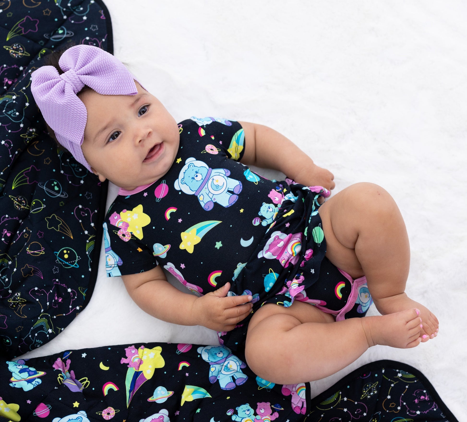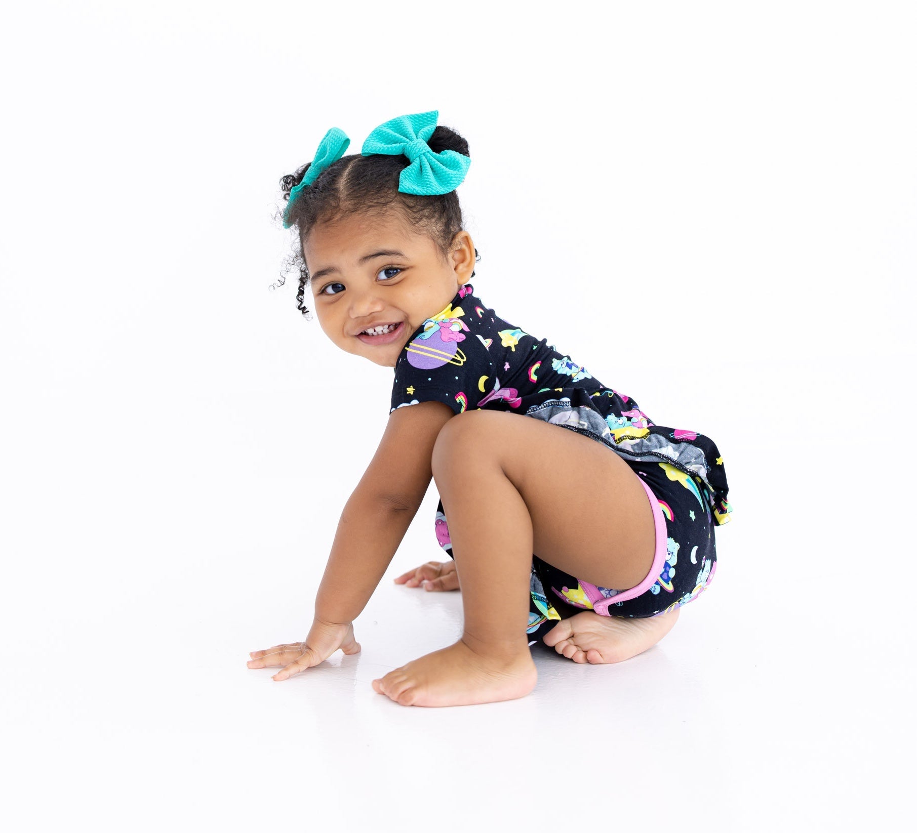 This birdie twirl was designed with your little one's comfort in mind. Utilizing a blend of bamboo viscose and spandex, the style provides both breathability and stretchability for a perfect and adorable fit. The fabric blend's superior softness is sure to keep your little one comfortable all day long!