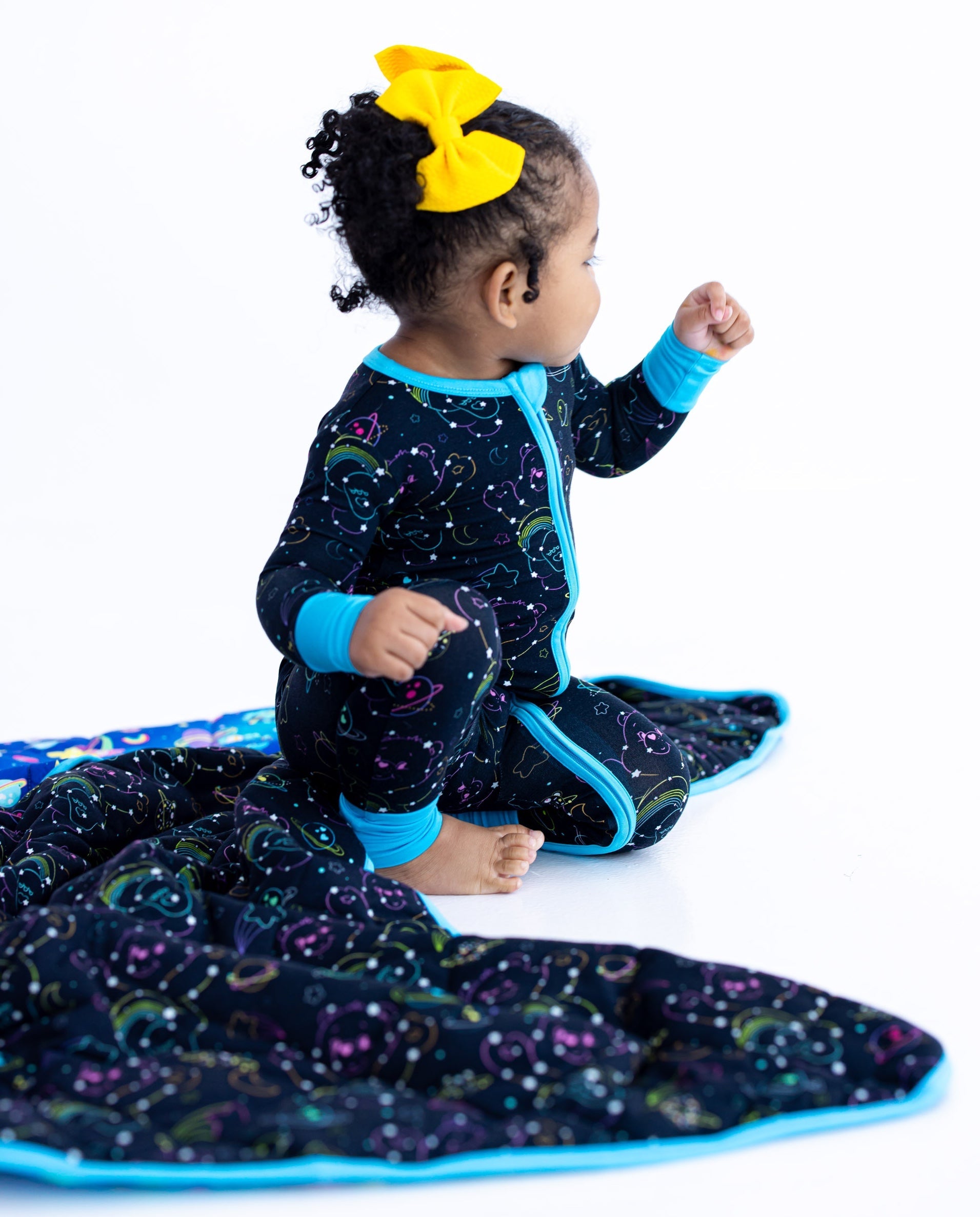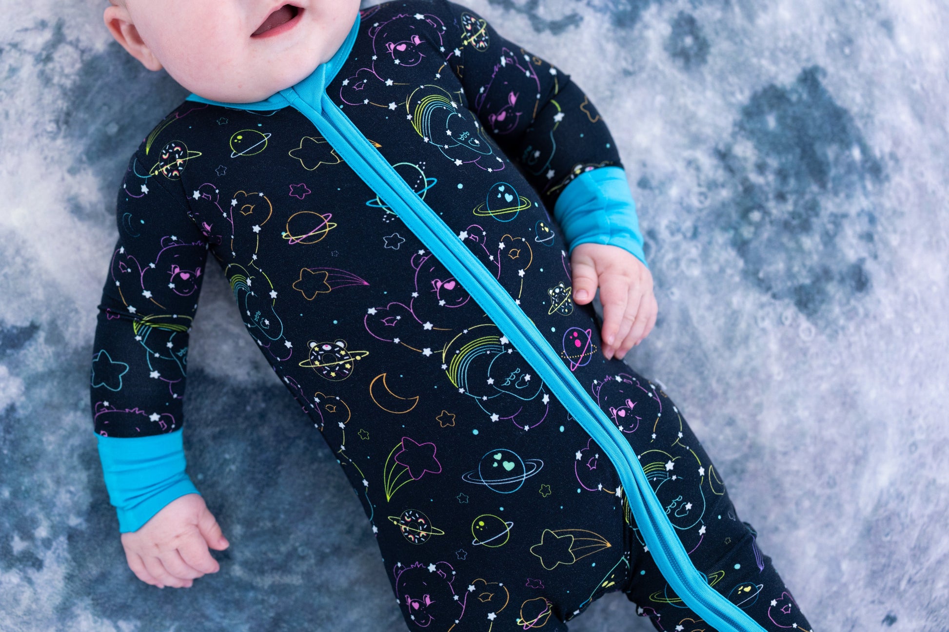 Romper or footie? Why not have both in one piece? You will love the option and ease of turning your romper into a footie! Our 2-way zipper feature makes diaper changes a breeze. Printed on irresistibly soft viscose from bamboo with just a touch of spandex. The perfect combination of cuteness and comfort!