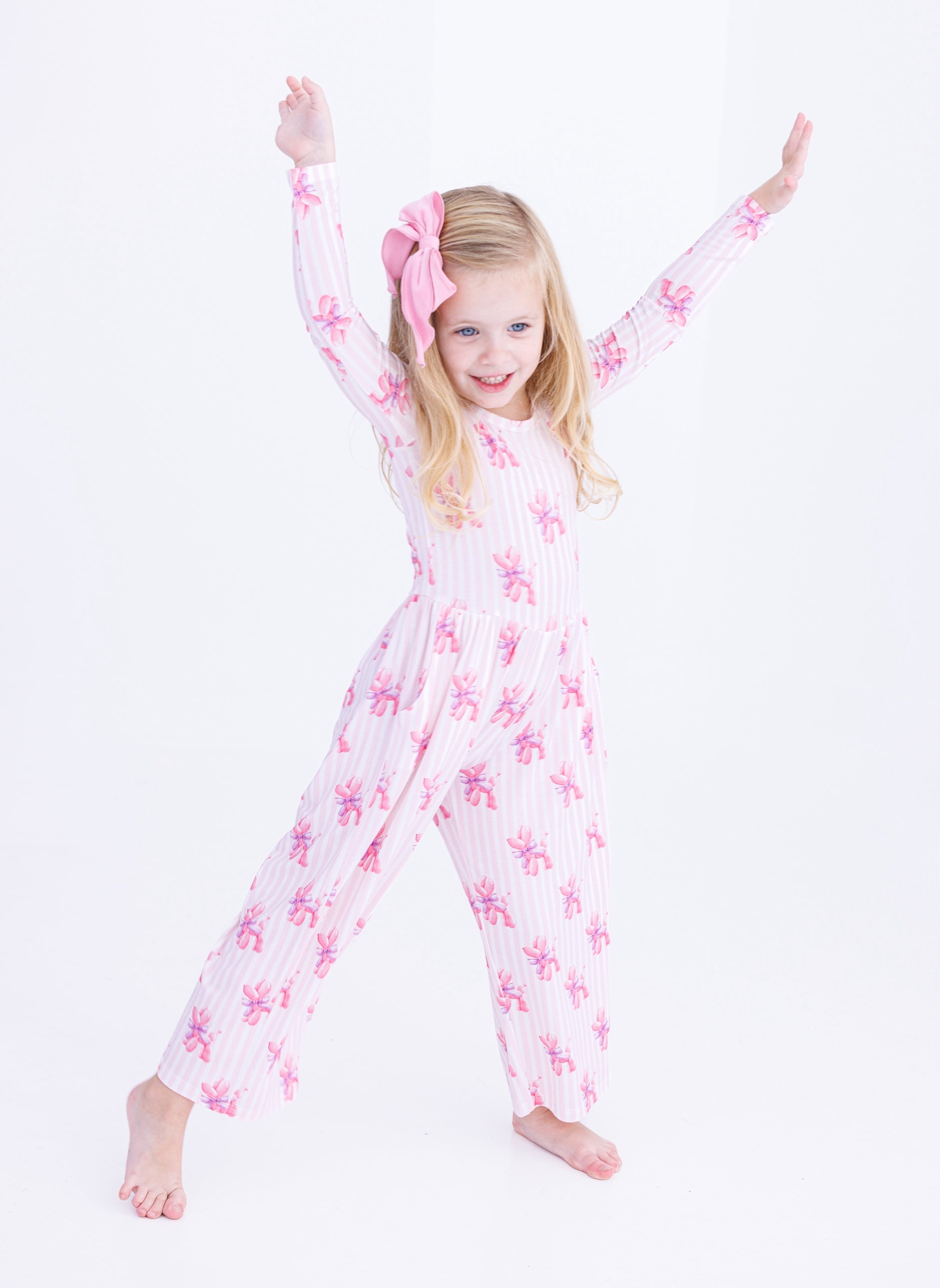 Crafted from a luxurious bamboo viscose and spandex blend, this jumpsuit offers unparalleled softness and comfort. Adorably stylish and effortlessly chic, it’s a must-have in your little one's wardrobe. Elevate their look with this timeless, sophisticated piece!