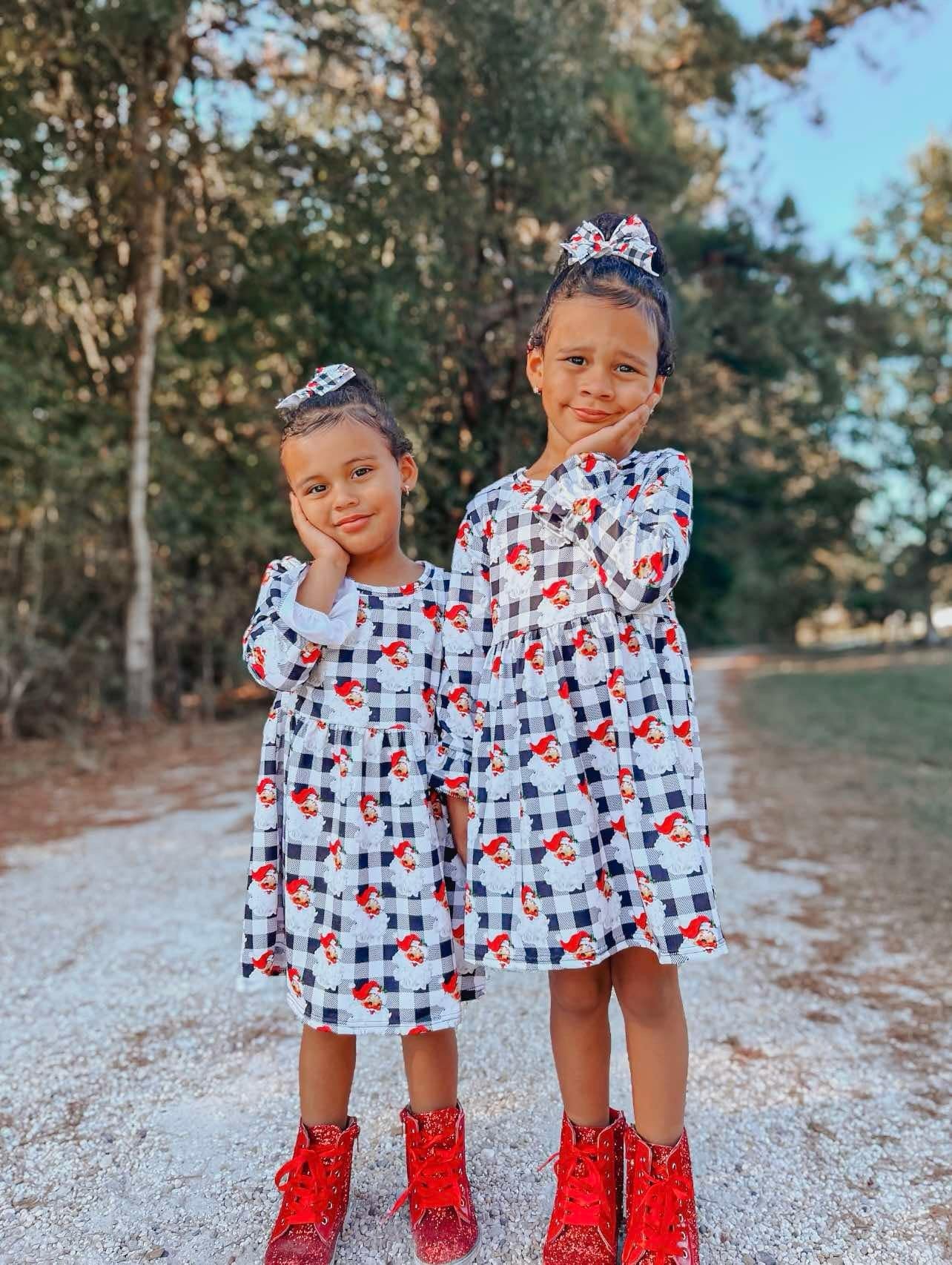 Checkered santa bell sleeve dress