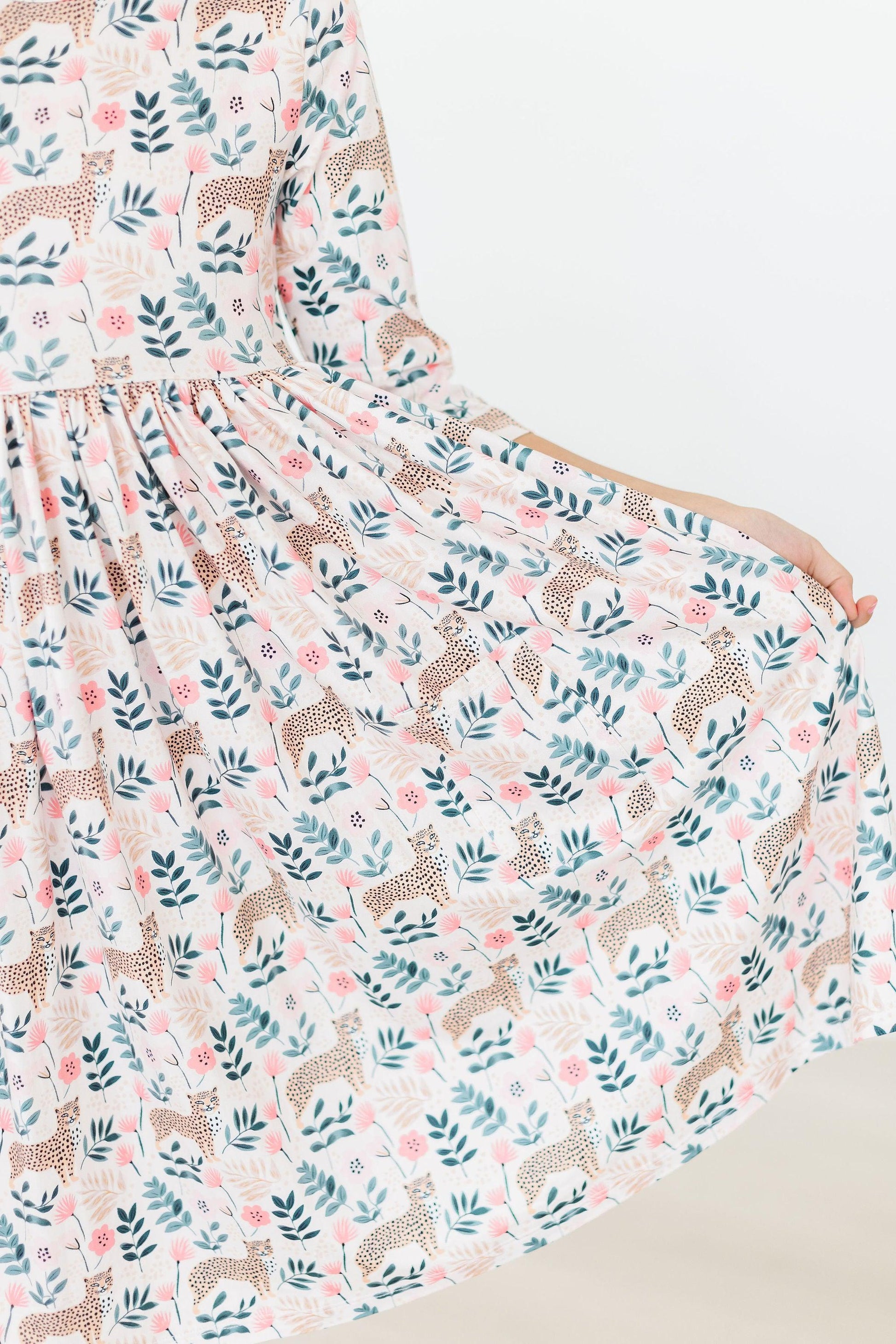 Cheetah Girl 3/4 Sleeve Pocket Twirl Dress