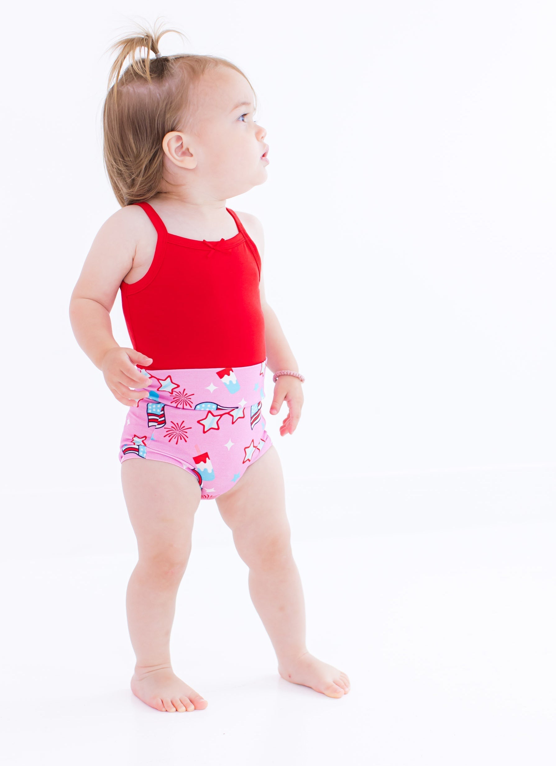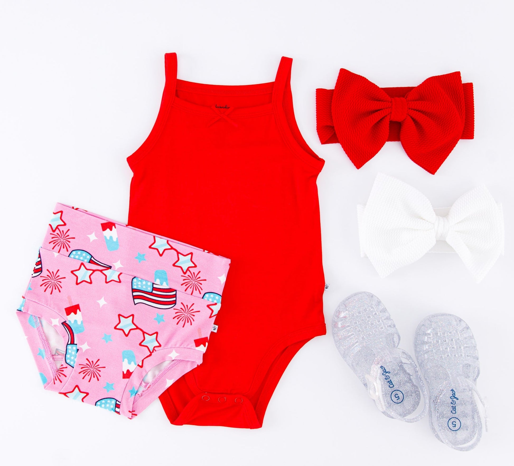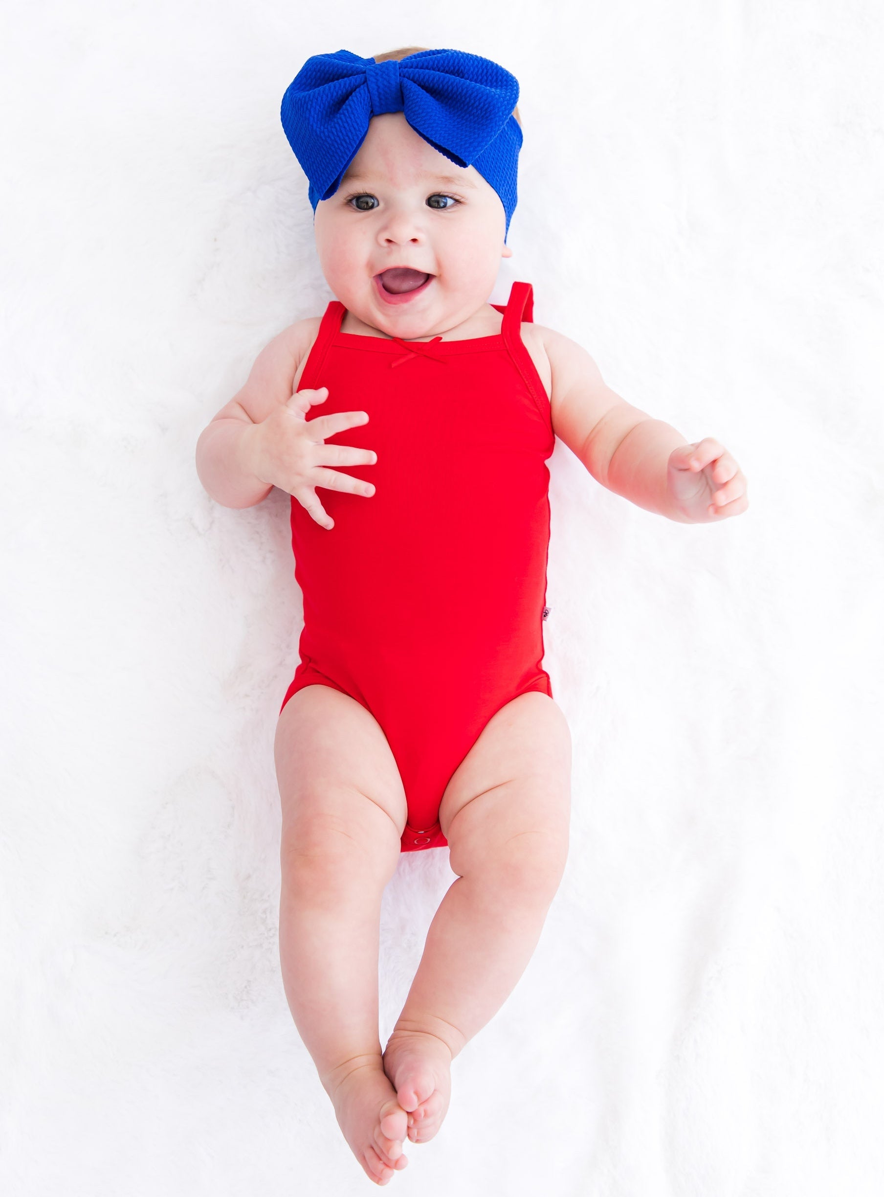 Elevate your little birdie's summer wardrobe with this bodysuit tank! Crafted from a premium blend of viscose from bamboo and spandex, this tank keeps them cool and stylish. Pair it with our coordinating bummies or biker shorts or wear it on its own. This bodysuit tank is a definite must-have for effortless style and undeniable comfort for your little one!