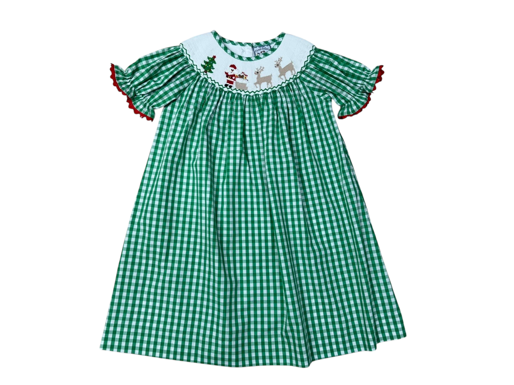 'Tis the season to twirl!🎄Our Christmas Time Smocked Bishop Dress is a holiday dream come true. Featuring a classic green gingham pattern and hand-smocked detailing with Santa, reindeer, and Christmas trees, this sweet bishop dress is full of festive charm.