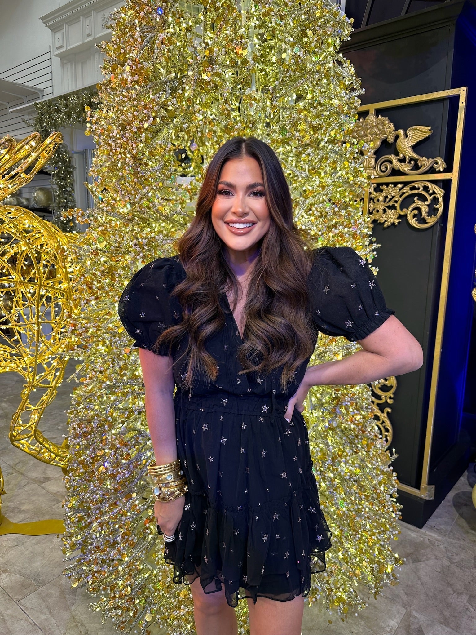 A #babecrew favorite is back for another season! The Clementine Dress features a flattering cinched waist, a slight puff sleeve, and a tiered skirt to add some volume. She looks great paired with a big earring and your favorite heels!