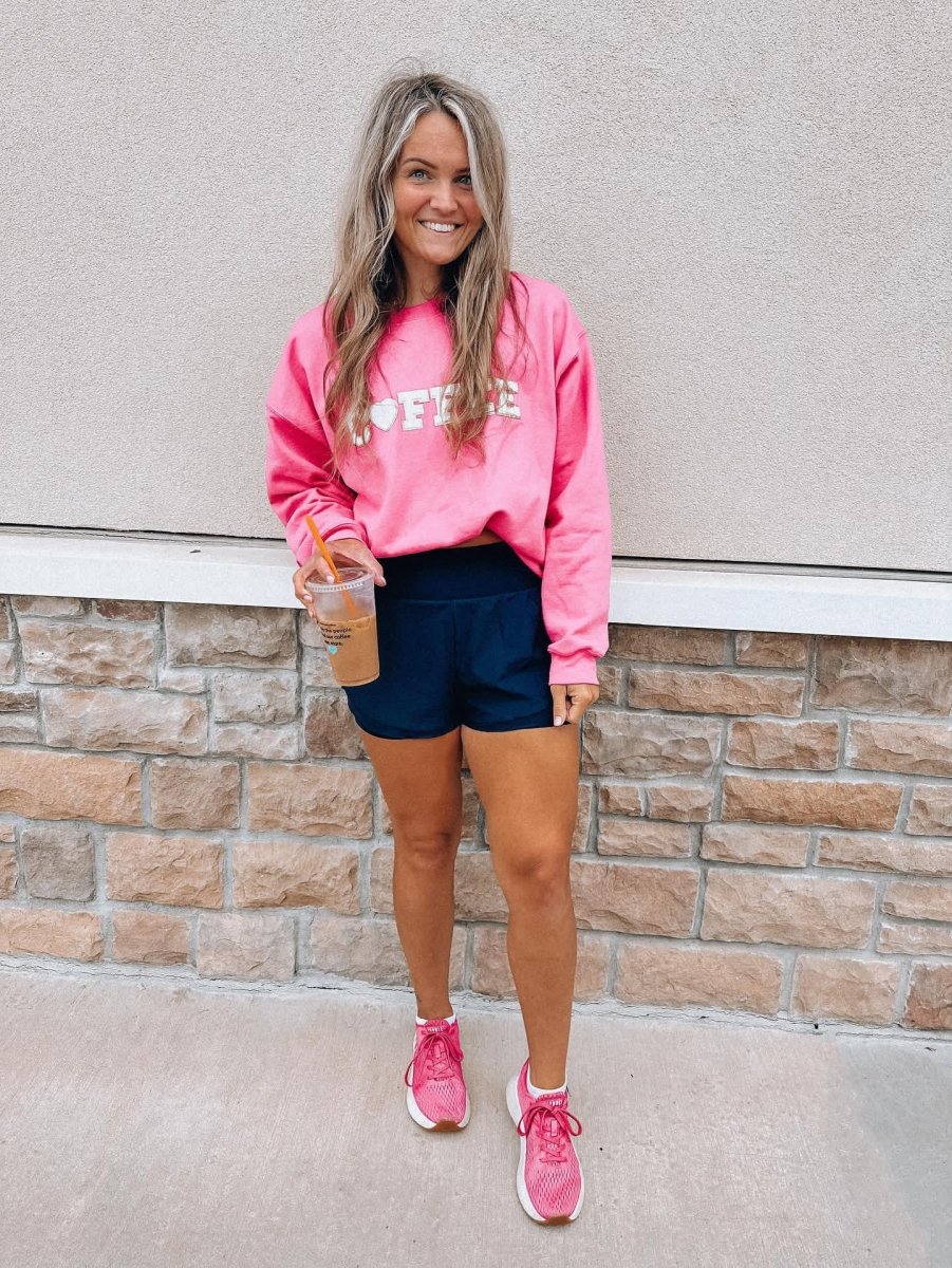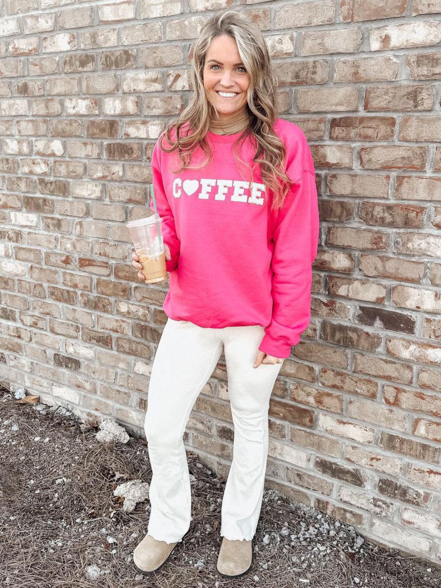 Coffee Heart Letter Patch Crewneck Sweatshirt