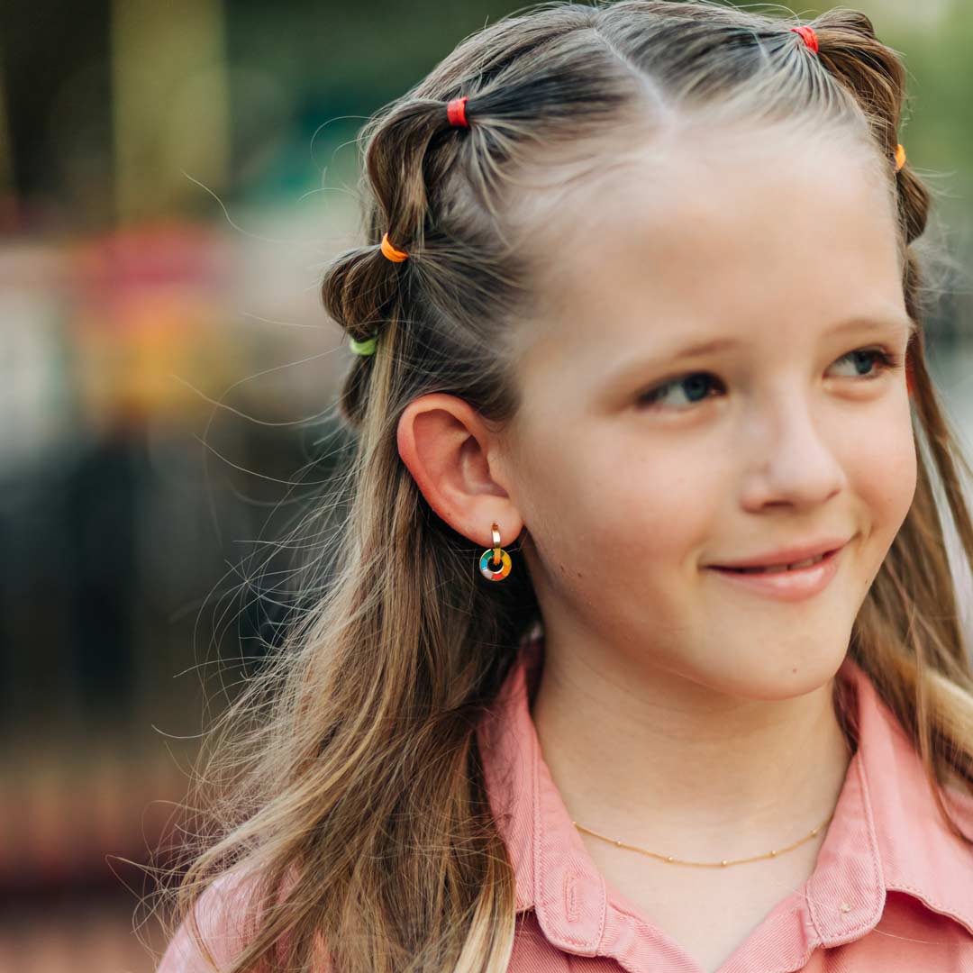 This charm is styled on our Chunky Textured Huggies in Gold.