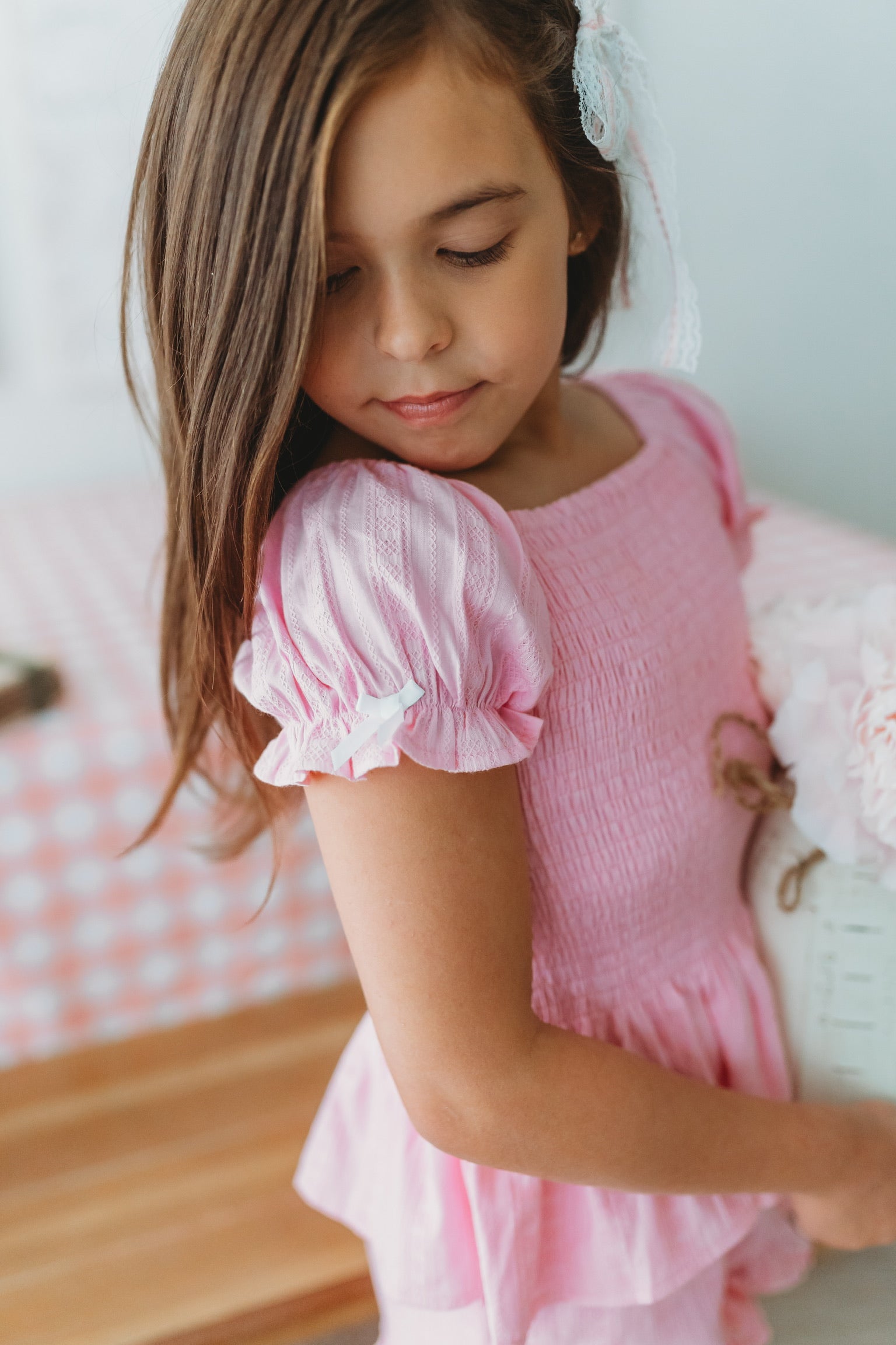 - Set includes smocked top and shorts