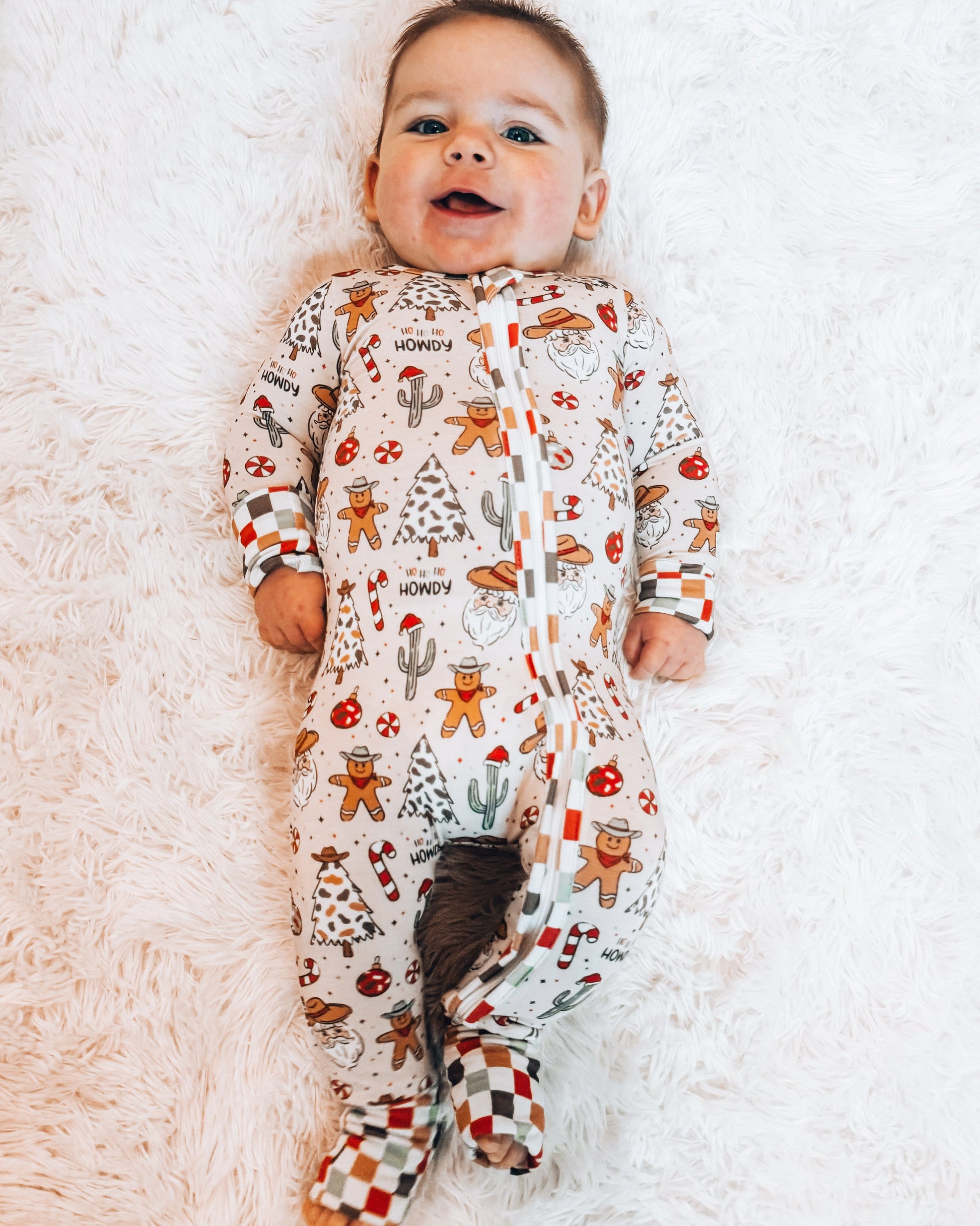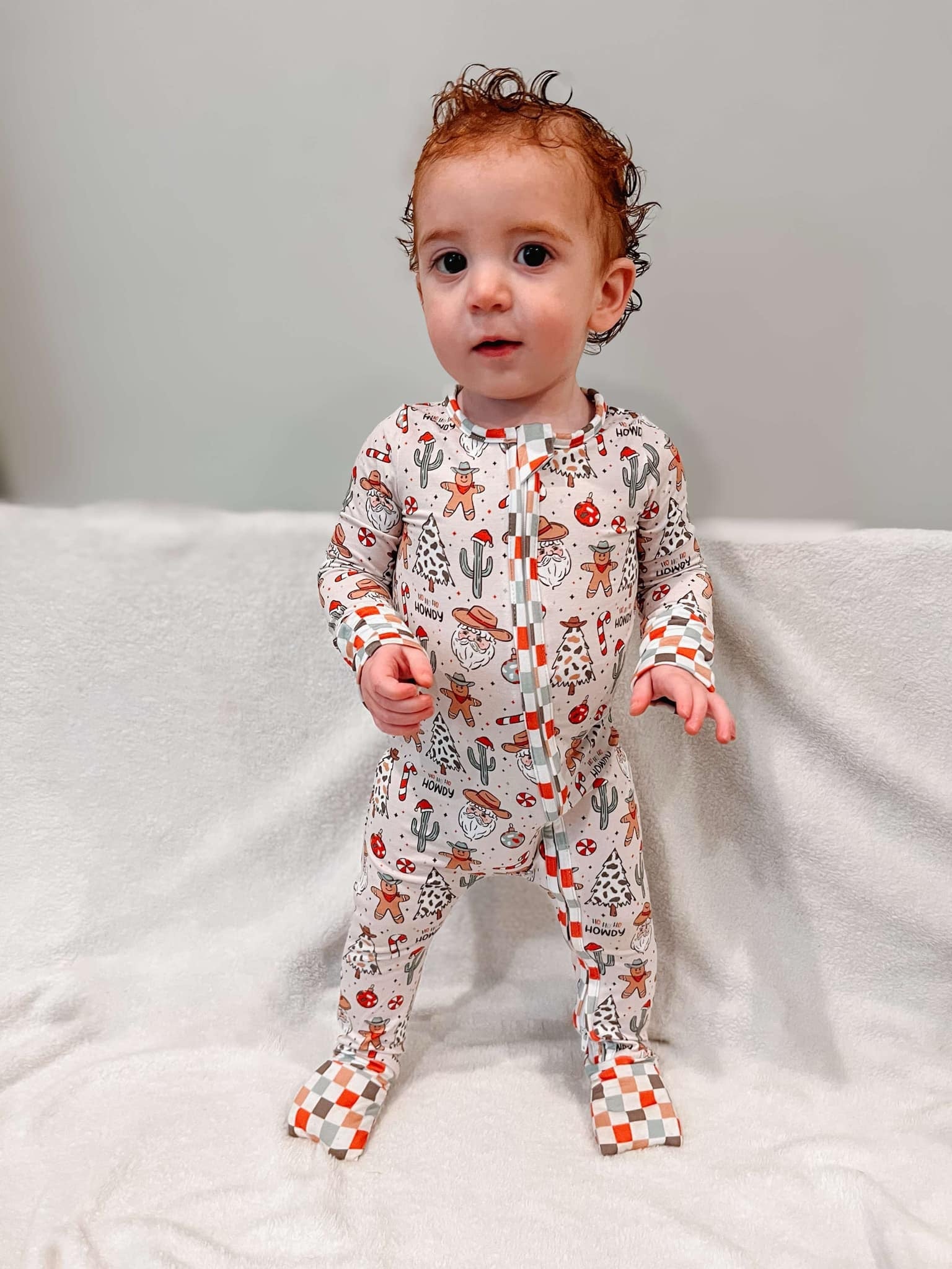 Cowboy christmas bamboo zip sleeper 220 GSM- TRUE TO SIZE