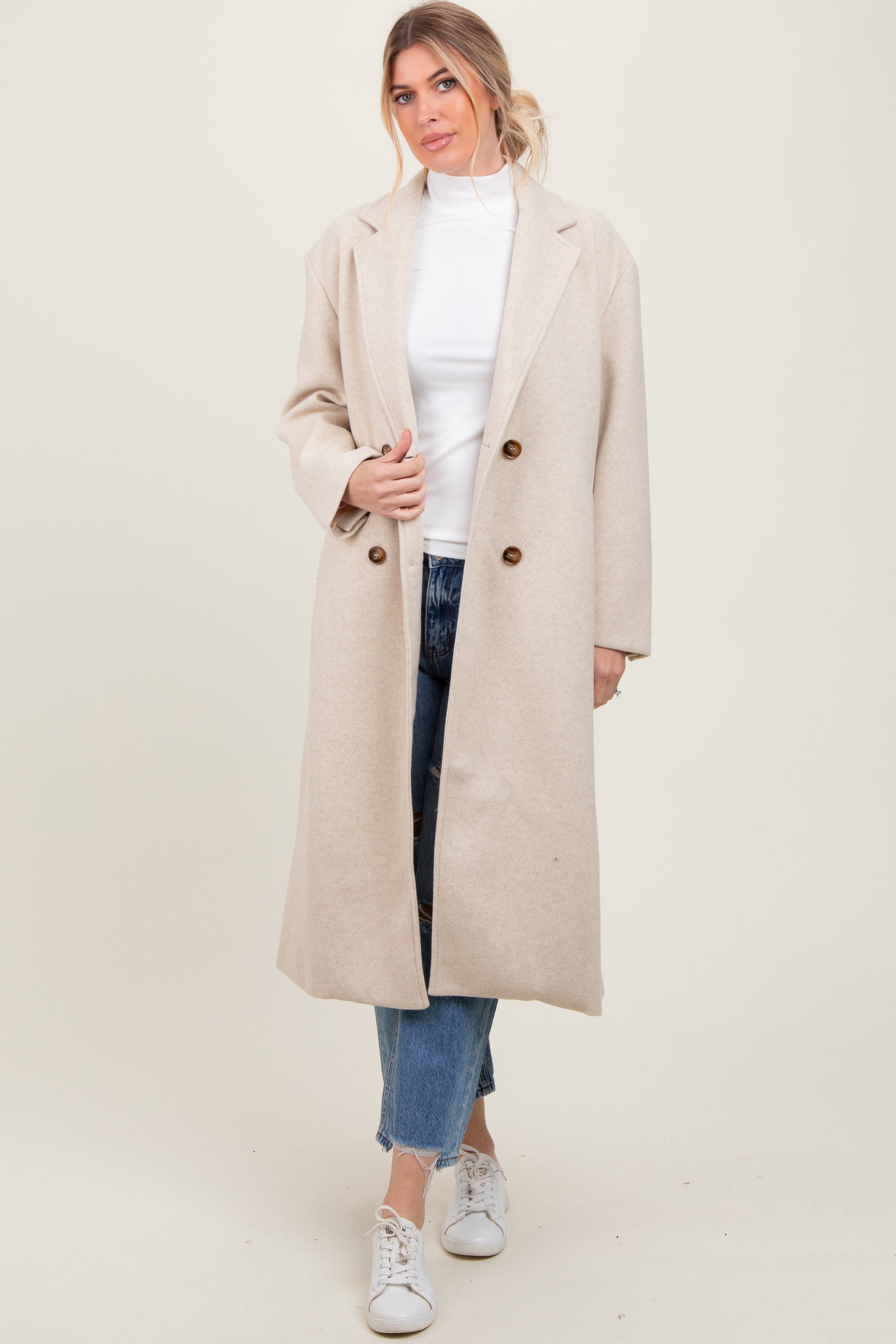 Cream Felted Double Breasted Lapel Maternity Button Coat