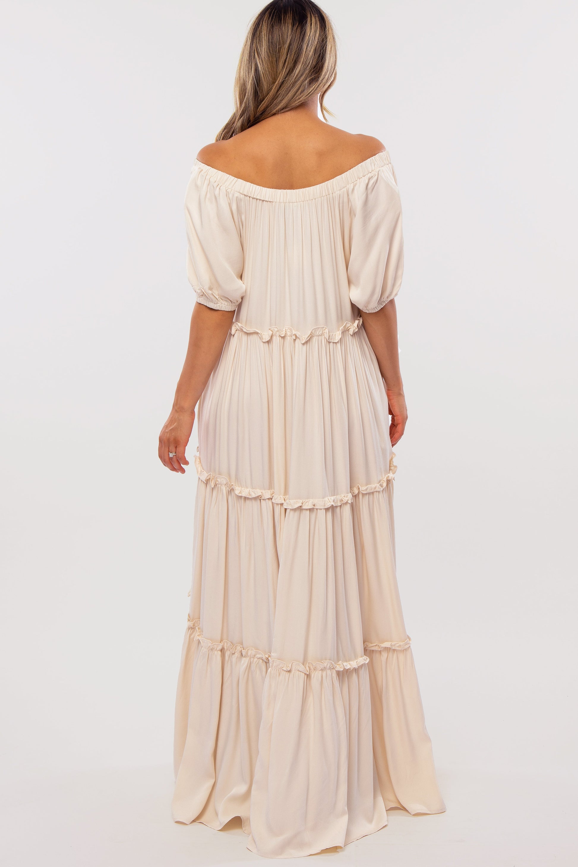 Cream Off Shoulder Ruffle Tiered Maxi Dress