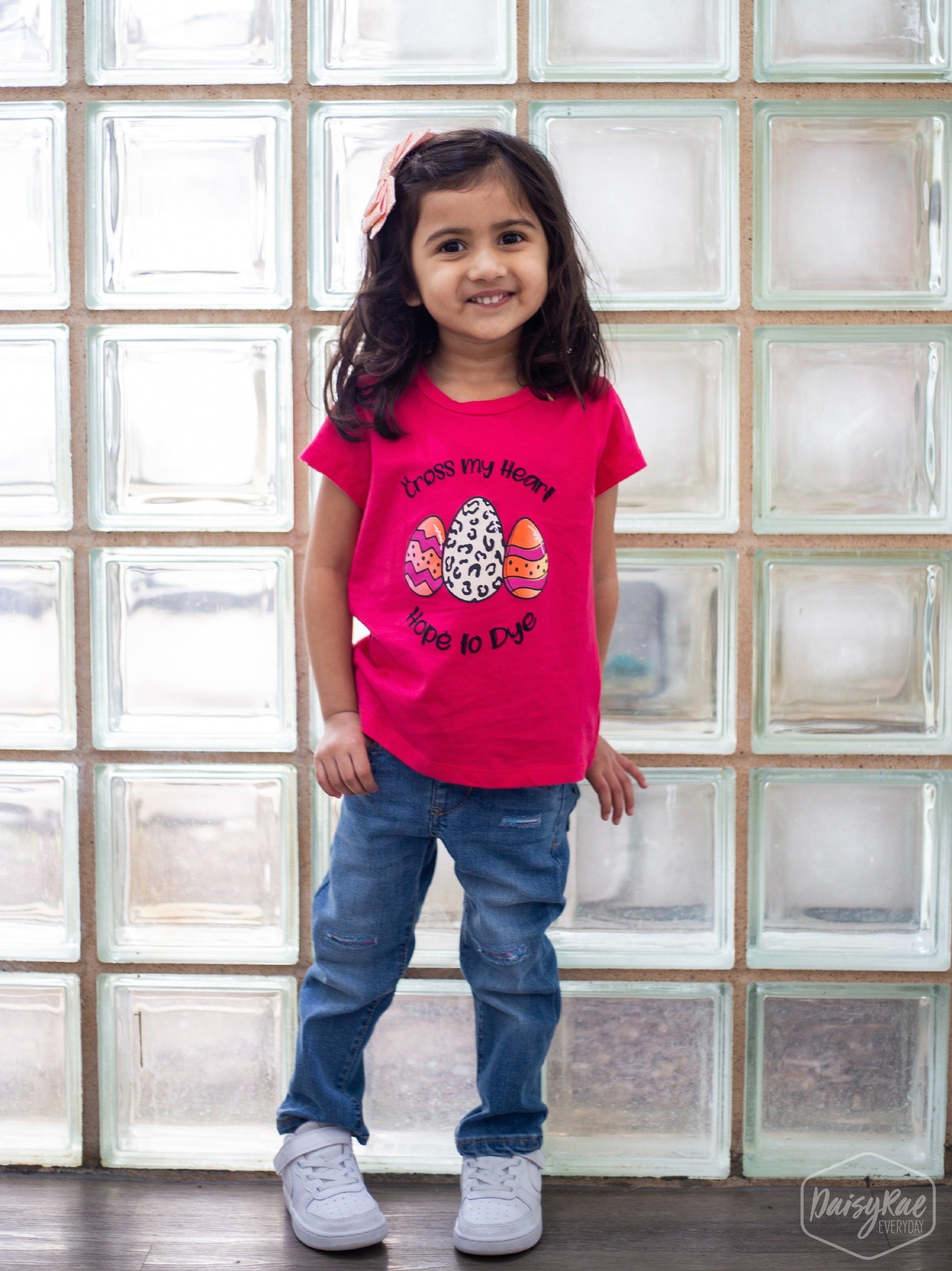 Cross my Heart Hope to Dye on Girls' Berry Pink Crewneck Tee