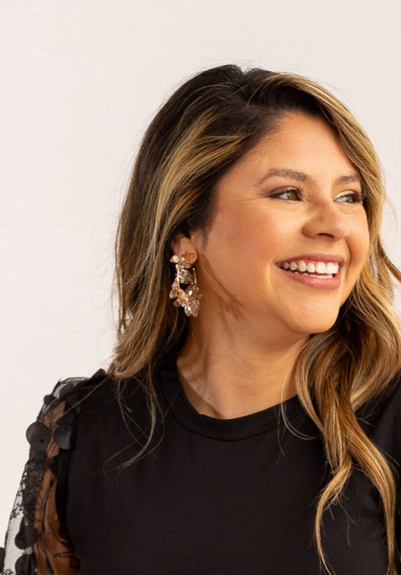 Champagne Blossom Hoops by Grace and Emma: Effortlessly elegant floral-inspired hoops, designed to add a touch of sophistication to any ensemble.